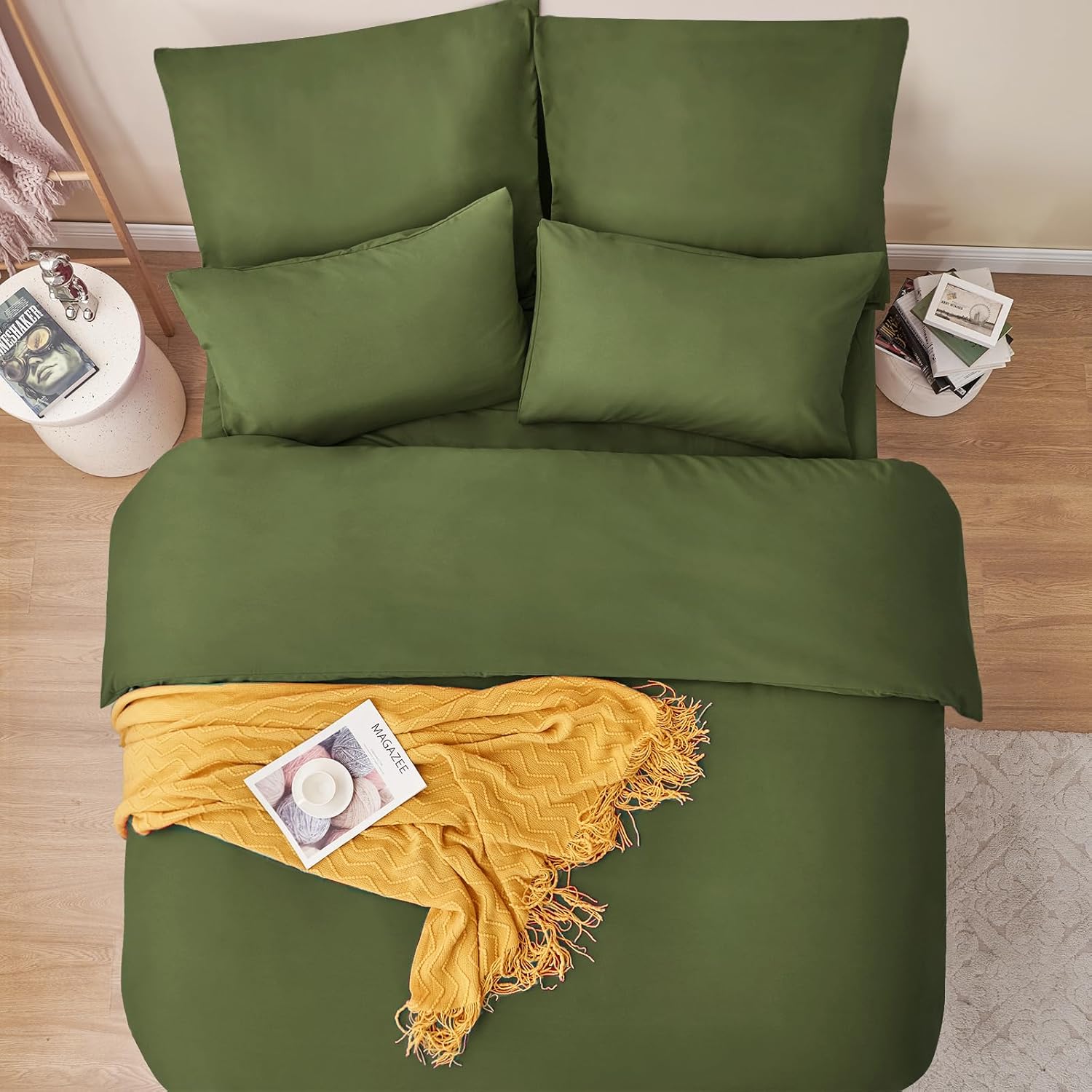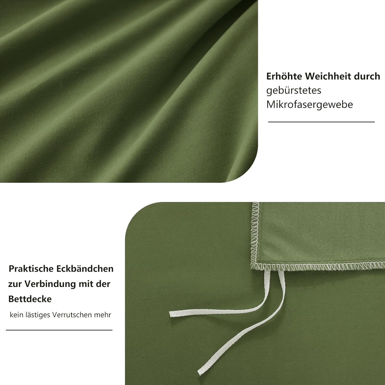 Спално бельо RUIKASI, 200 x 200 см, 3 части, зелено, комплект пликове за завивки, маслинено зелено, с калъфки за възглавници, комплект спално бельо, 2 x 2 м, микрофибър, с цип, меко и не се глади
