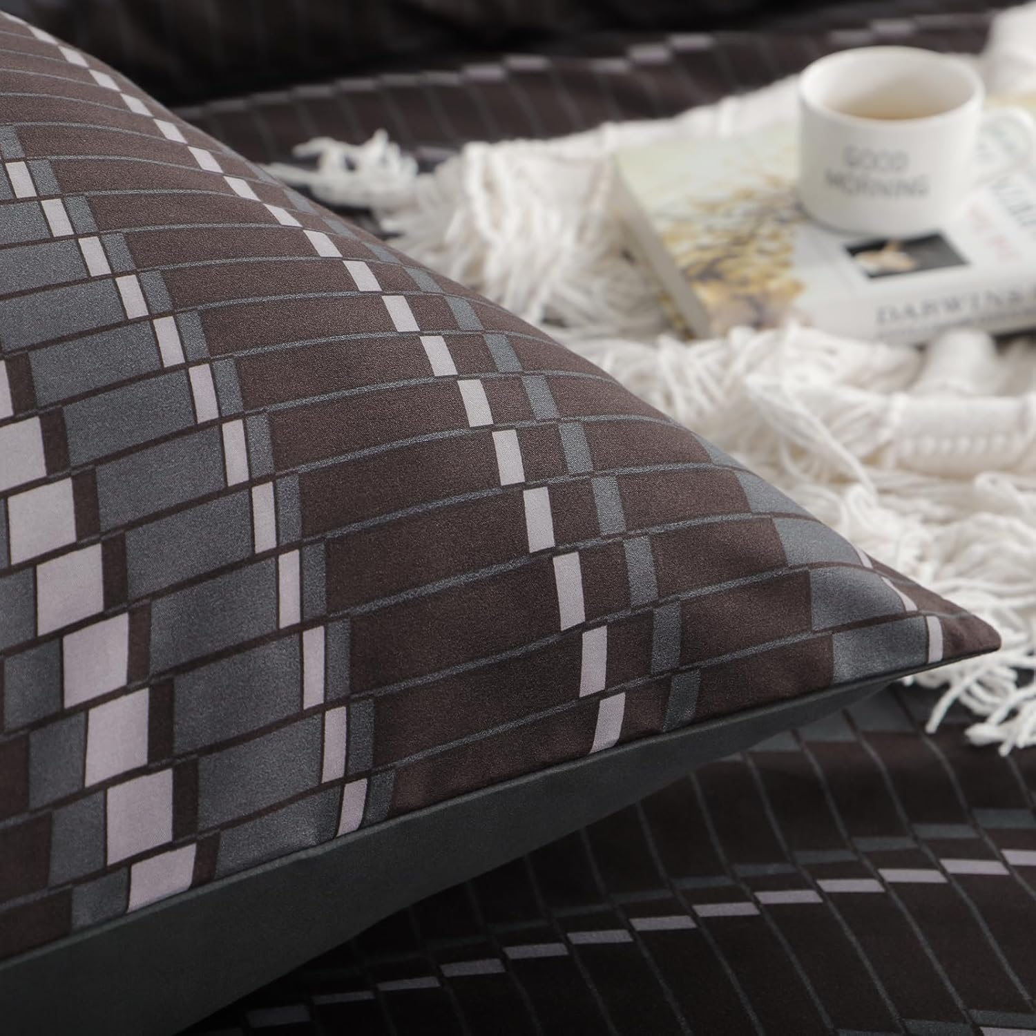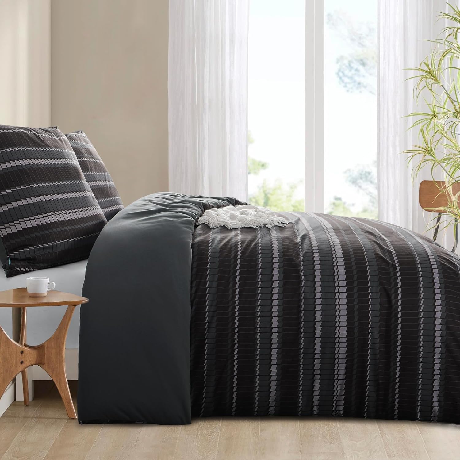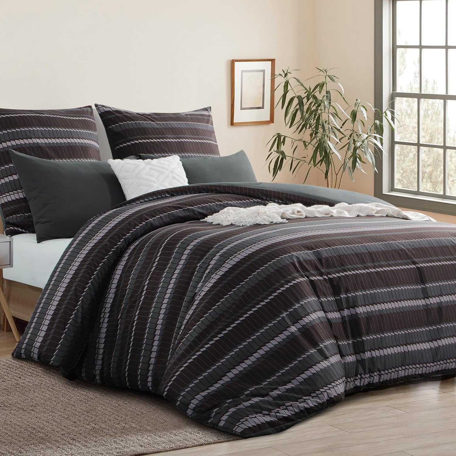 Спално бельо RUIKASI 200 x 200 см Комплект от 3 тъмна завивка 200 x 200 см с раиран мотив, Комплекти спално бельо от микрофибър 200 x 200 см с цип, меко и нежелаещо гладене