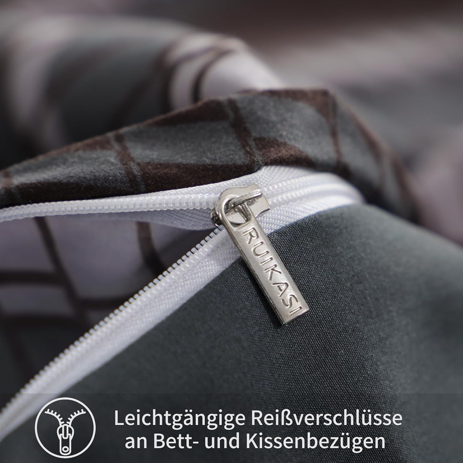 Спално бельо Ruikasi от 100% първокласен микрофибър, изработено от две страни в различен шикозен и модерен стил, ще ви накара да изглеждате страхотно в личната си спалня; елегантен и очарователен вид за спокойна атмосфера.