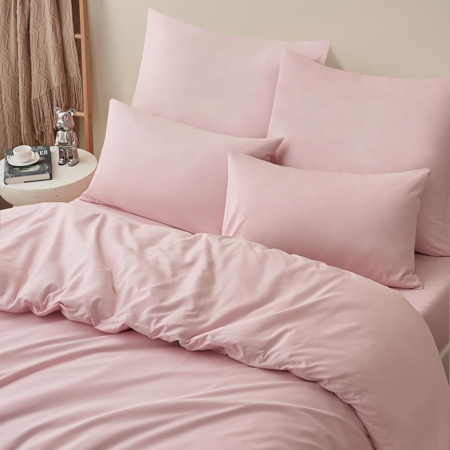 Спално бельо RUIKASI 200 x 200 см Розово, 3 части - Светлорозови комплекти спално бельо от микрофибър Oeko-Tex, калъфи за завивки 200 x 200 см + 2 калъфки за възглавници 80 x 80 см с цип, меко и нежелаещо гладене