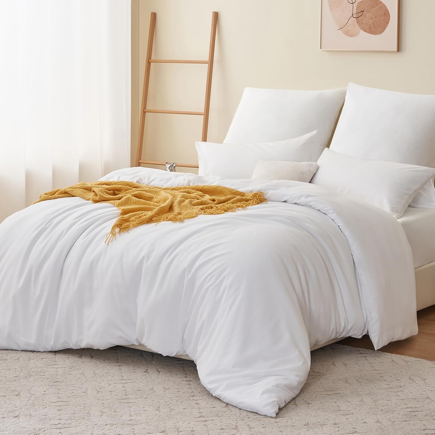 Спално бельо RUIKASI, 200 x 220 см, 3 части, бяло, комплект пликове за завивки, бяло, с калъфки за възглавници, комплект спално бельо от микрофибър, с цип, меко и не се глади