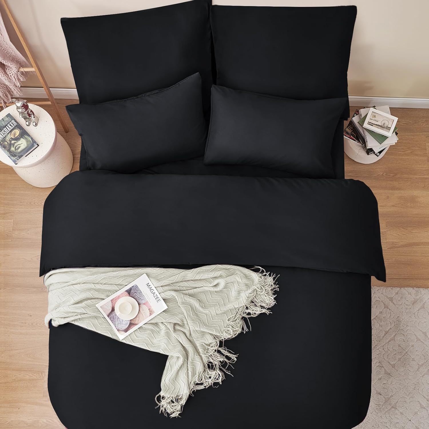 Спално бельо RUIKASI, 200 x 220 см, 3 части, черно, комплект пликове за завивки, с калъфки за възглавници, комплект спално бельо, микрофибър, с цип, меко и не се глади