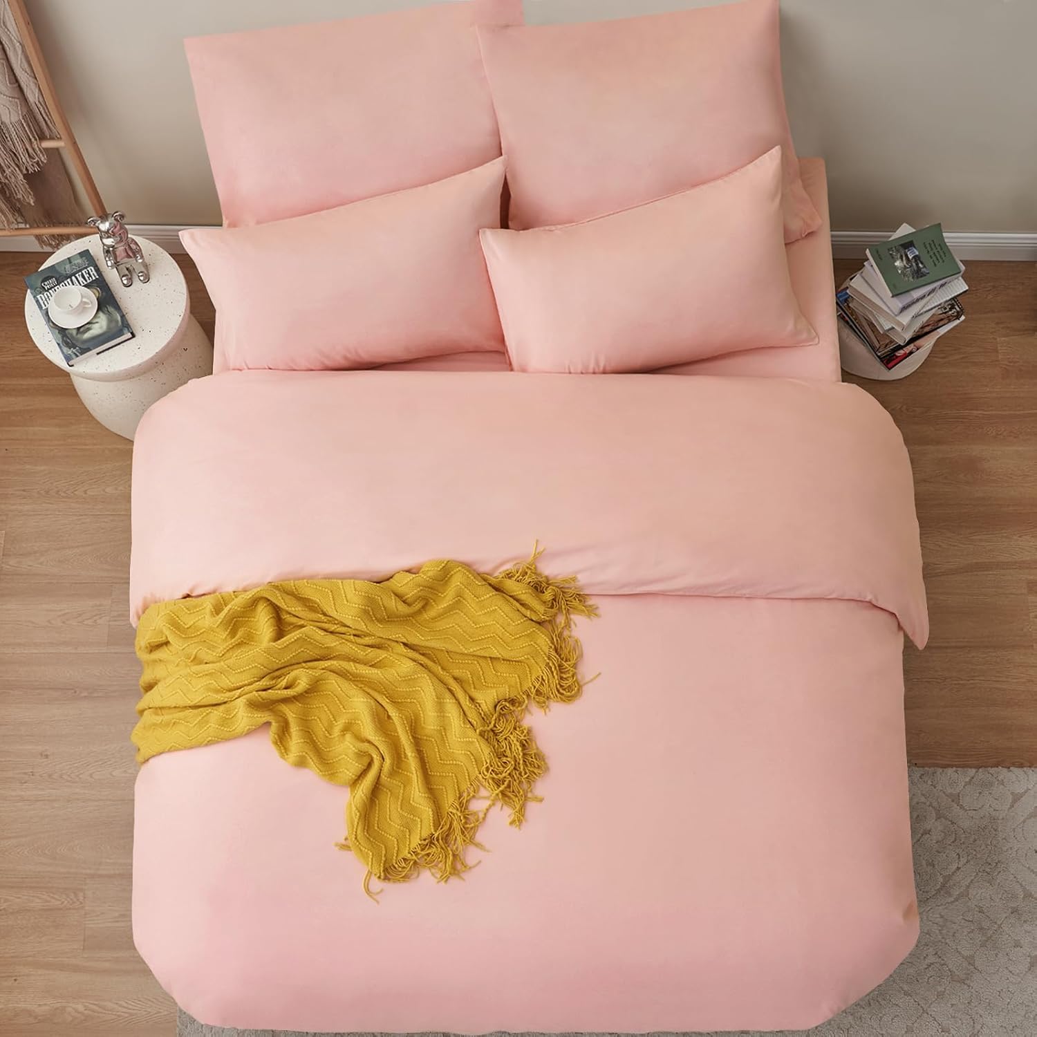 Спално бельо RUIKASI, 200 x 220 см, 3 части, розово, комплект пликове за завивка, прасковено розово, с калъфки за възглавници, комплект спално бельо от микрофибър, с цип, меко и не се глади