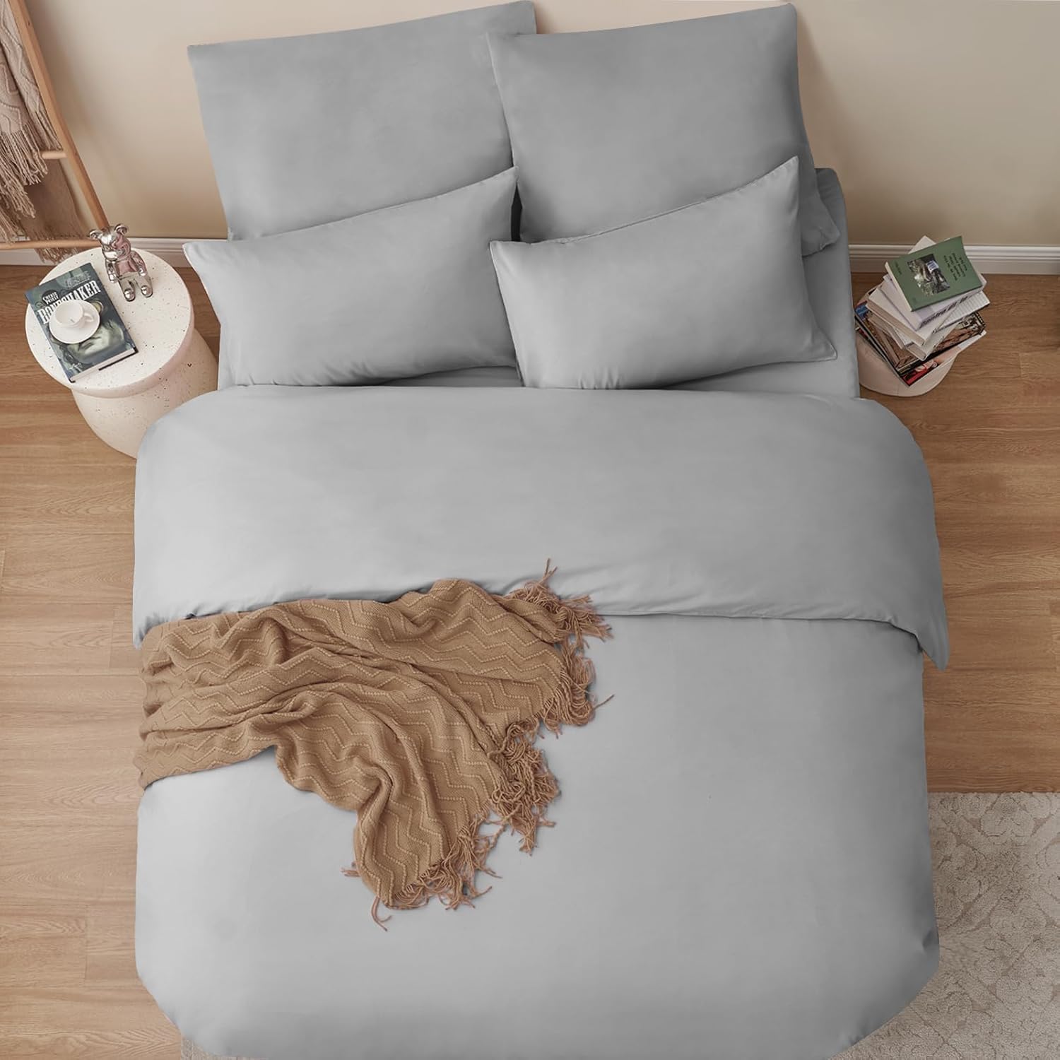Спално бельо RUIKASI, 200 x 220 см, 3 части, сиво, комплект пликове за завивки, светло сиво, с калъфки за възглавници, комплект спално бельо от микрофибър, с цип, меко и не се глади
