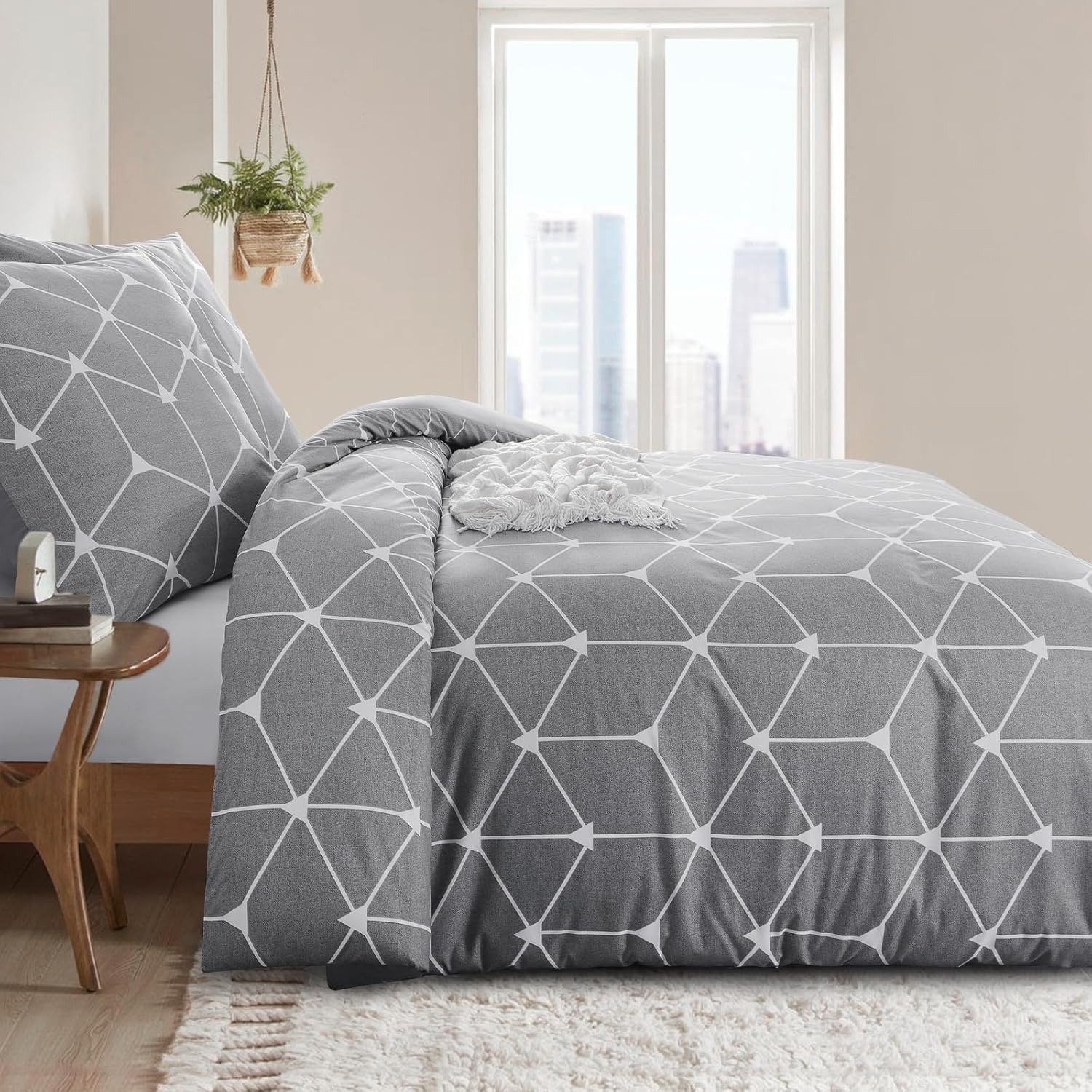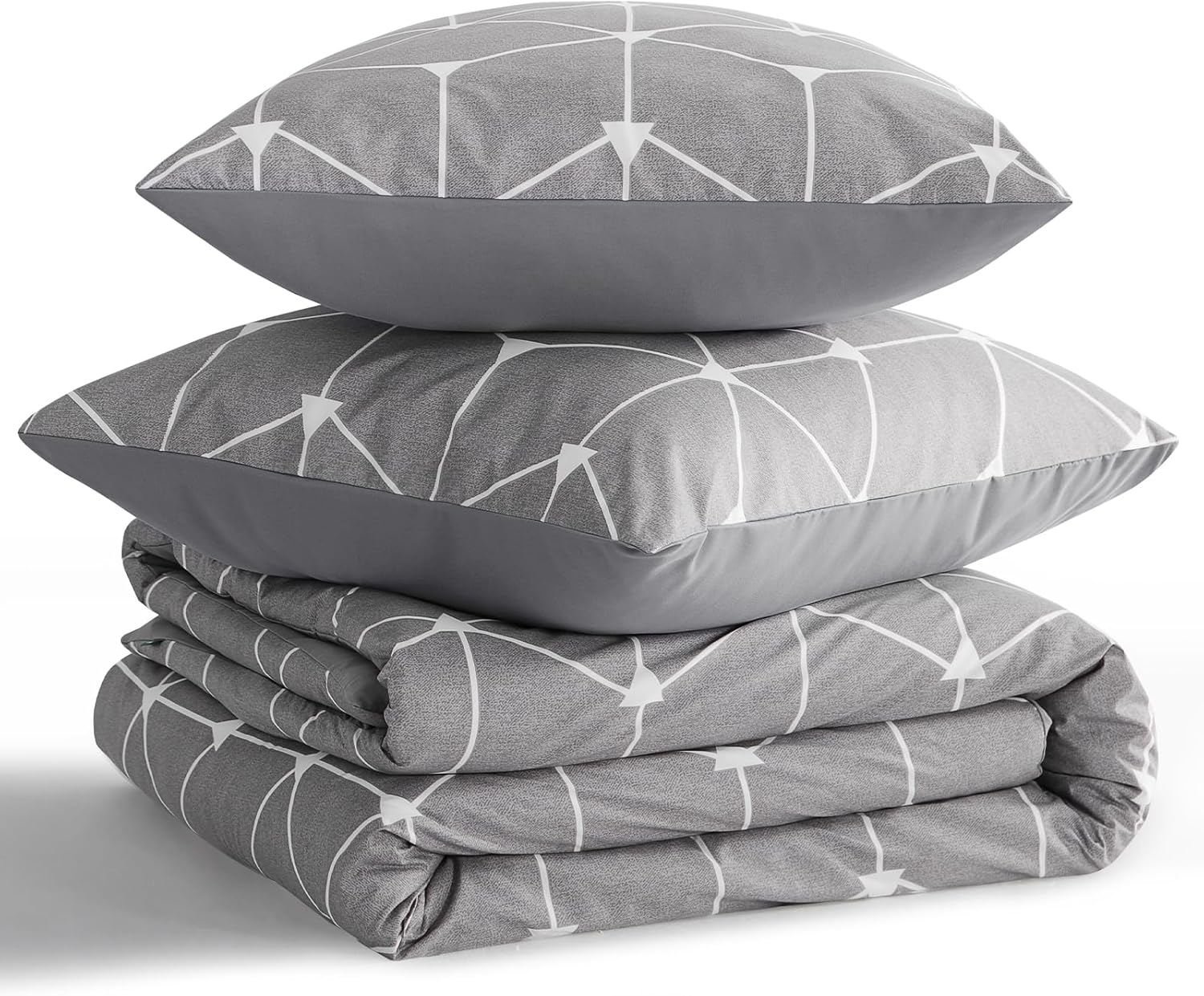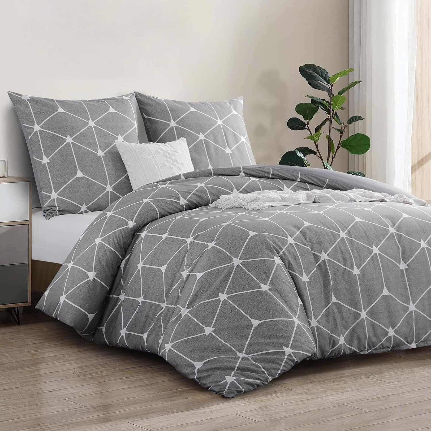 Спално бельо RUIKASI 200 x 220 см, 3 части, светло сиво - Плик за завивка 200 x 220 см с геометричен мотив, Комплект спално бельо от микрофибър с цип, меко и не се глади
