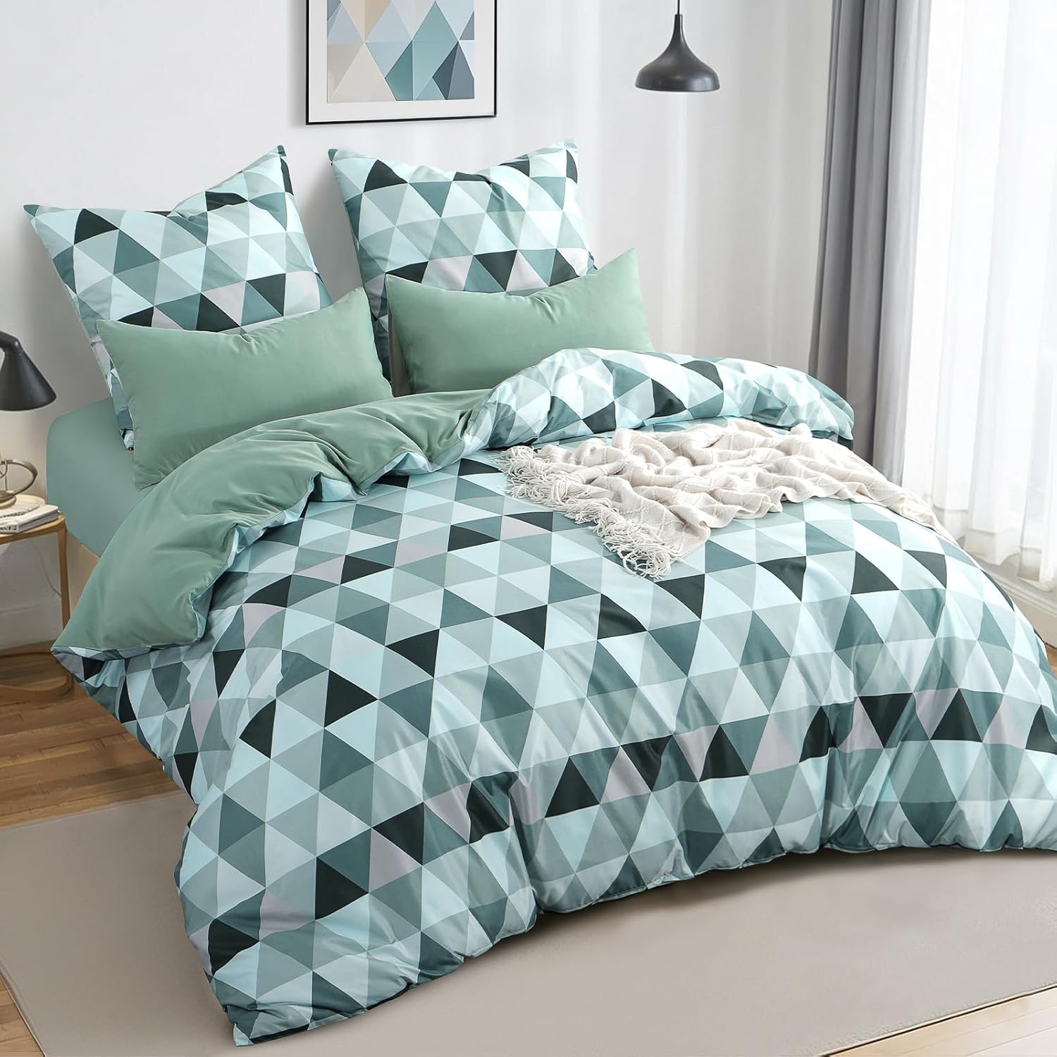 Спално бельо RUIKASI 200 x 220 см, 3 части, зелено - калъф за завивка 200 x 220 см с триъгълник, комплекти спално бельо от микрофибър 200 x 220 см с цип, меко и не се глади