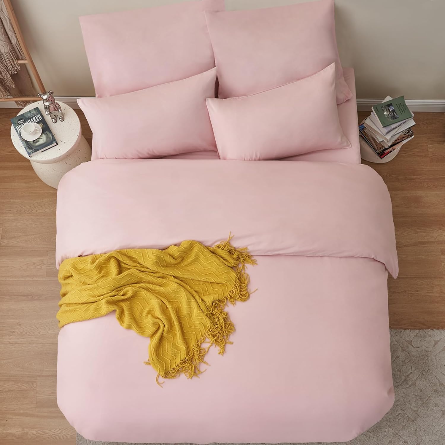 • Спалното бельо с размери 200 x 135 см е представено в семпъл дизайн и е решено в няколко модерни едноцветни цвята, така че лесно можете да намерите подходящо спално бельо за интериорния стил. То също така добавя стилни акценти към спалнята и създава домашна атмосфера.