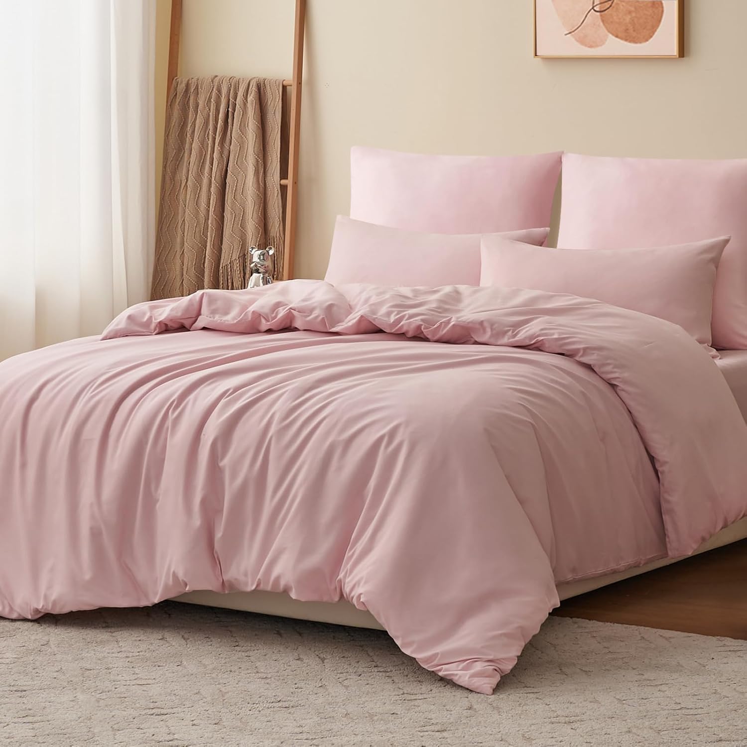 Спално бельо RUIKASI 200 x 220 см Розово, 3 части - Светлорозови комплекти спално бельо от микрофибър Oeko-Tex, калъфи за завивки 200 x 220 см + 2 калъфки за възглавници 80 x 80 см с цип, меко и не се глади