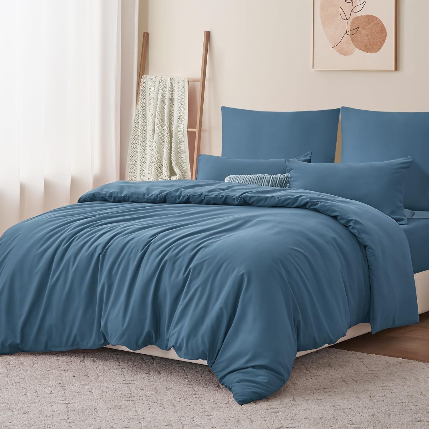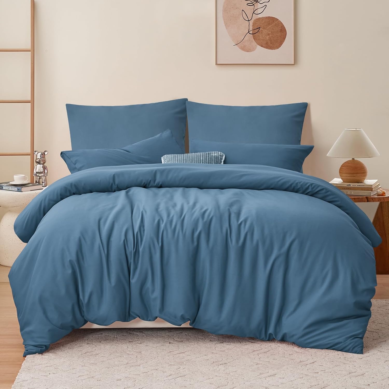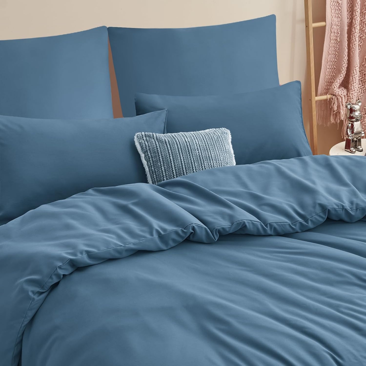Спално бельо RUIKASI 200 x 220 см син комплект от 3 части - деним син микрофибър спално бельо Oeko-Tex, калъфи за завивки 200 x 220 см + 2 калъфки за възглавници 80 x 80 см с цип, меко и нежелаещо гладене