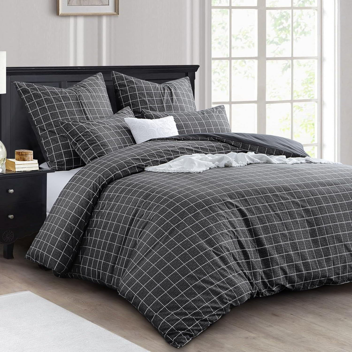 Спално бельо RUIKASI 220 x 240 см, 3 части антрацит – калъф за завивка 220 x 240 см с решетъчен мотив, комплект спално бельо от микрофибър 240 x 220 с цип, меко и нежелаещо гладене