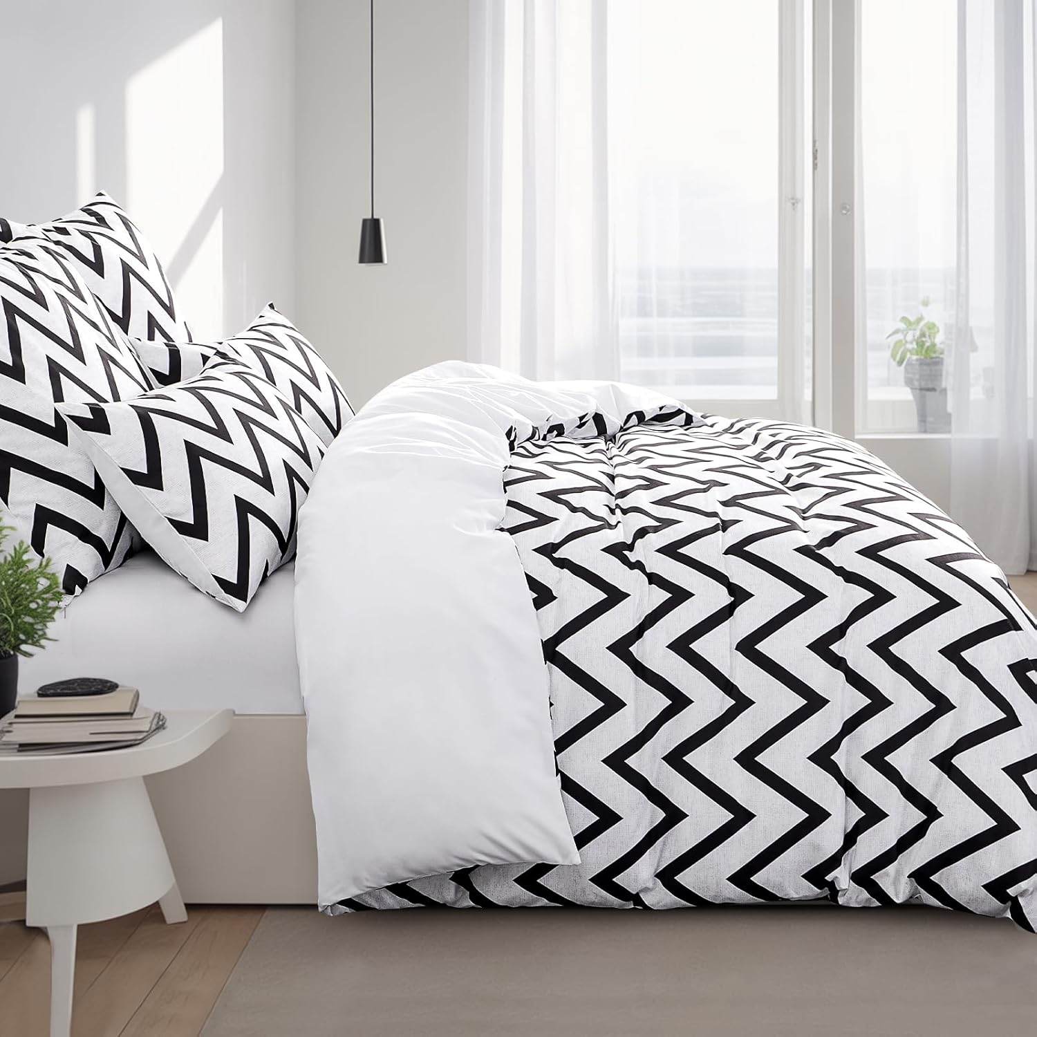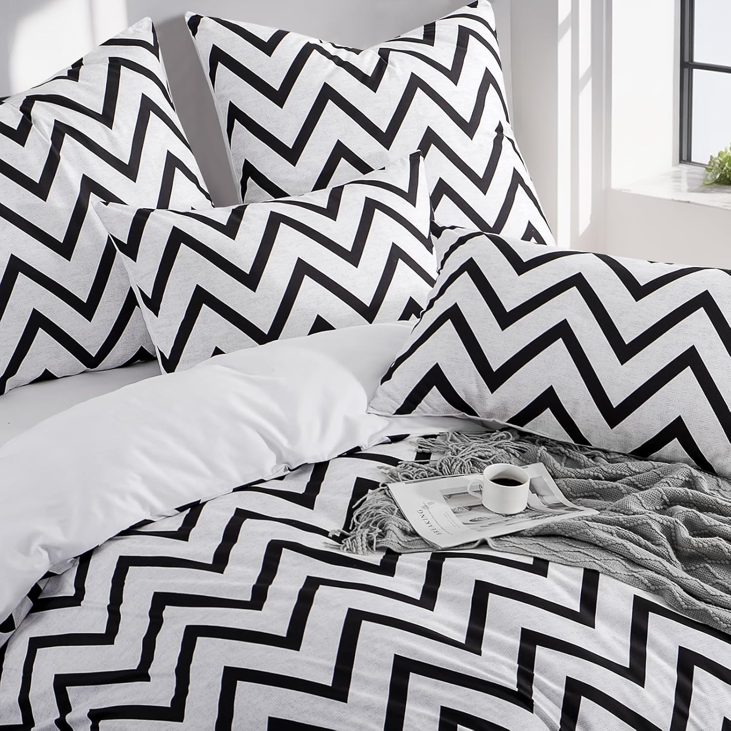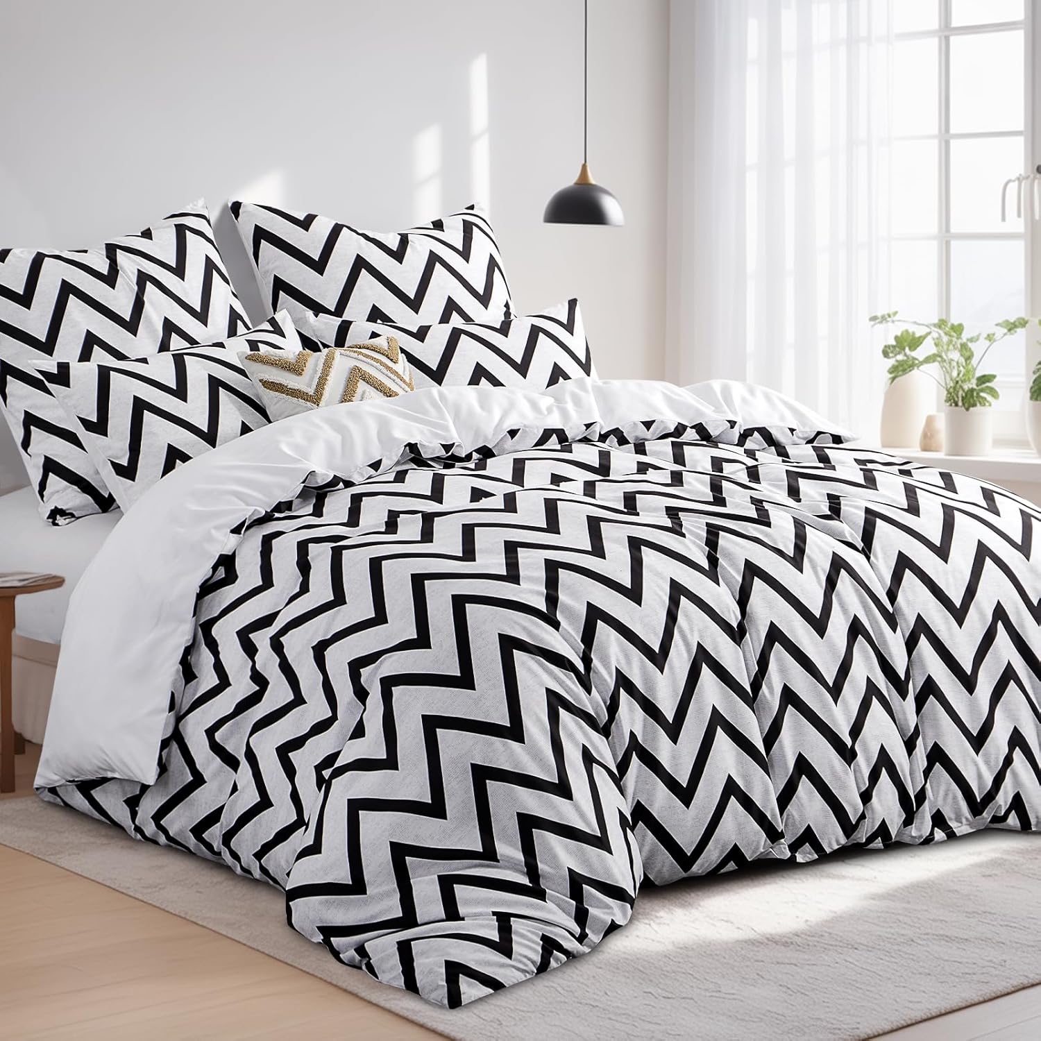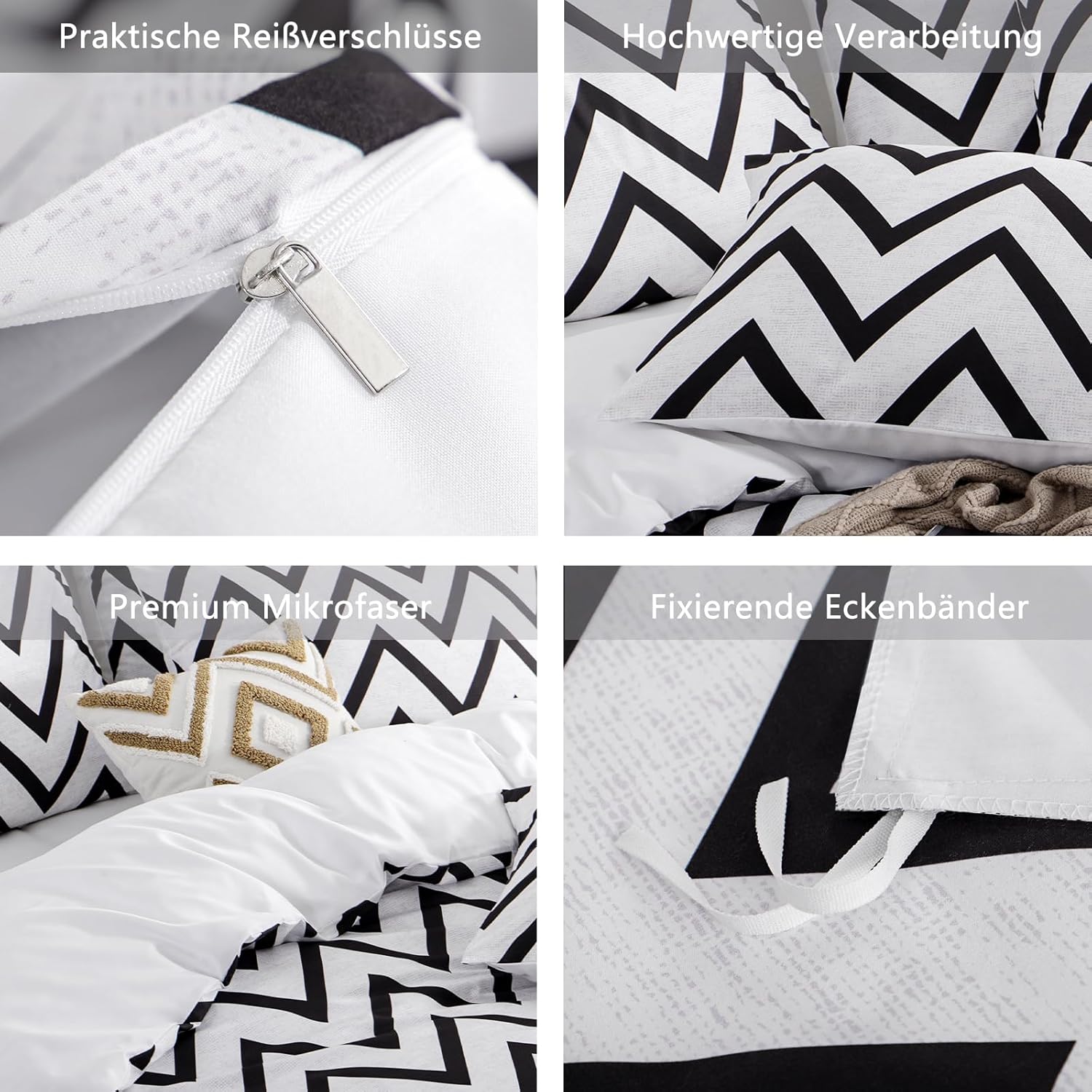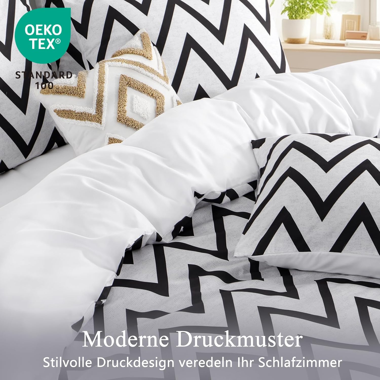 Спално бельо RUIKASI 220 x 240 см, 3 части, бяло - калъф за завивка 220 x 240 см с шеврон шарка, комплекти спално бельо от микрофибър 220 x 240 см с цип, меко и нежелаещо гладене