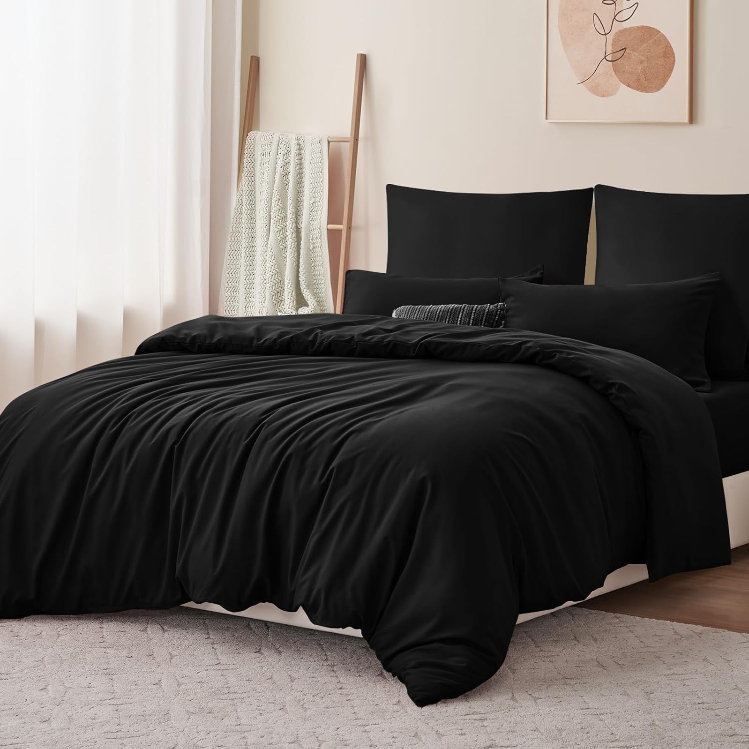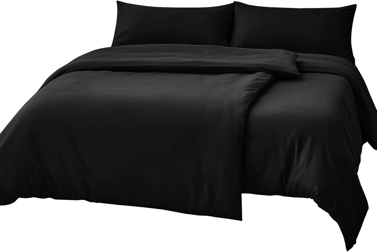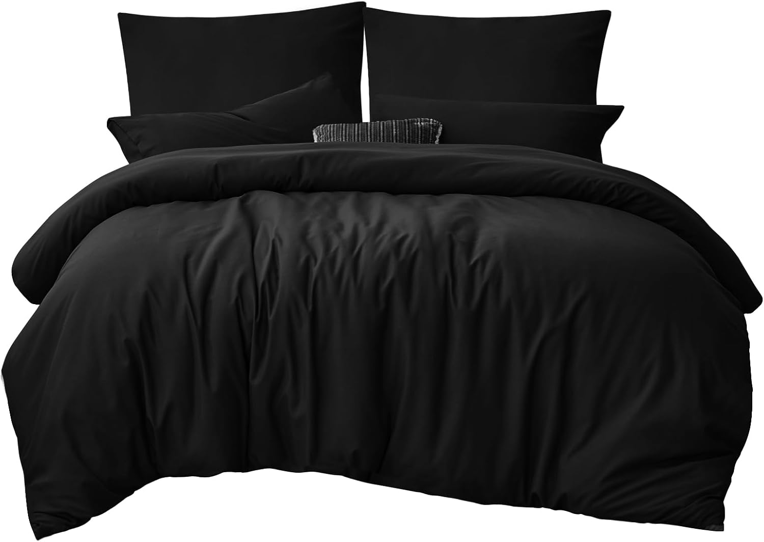 Спално бельо RUIKASI, 220 x 240 см, 3 части, черно, комплект калъфки за завивки, с калъфки за възглавници, комплект спално бельо от микрофибър, с цип, меко и не се глади