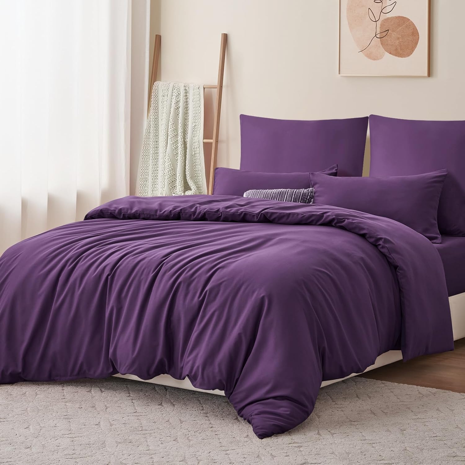Спално бельо RUIKASI, 220 x 240 см, 3 части, лилаво, комплект пликове за завивка, с калъфки за възглавници, комплект спално бельо от микрофибър, с цип, меко и не се глади