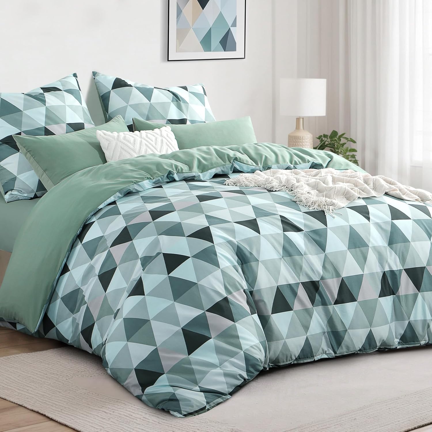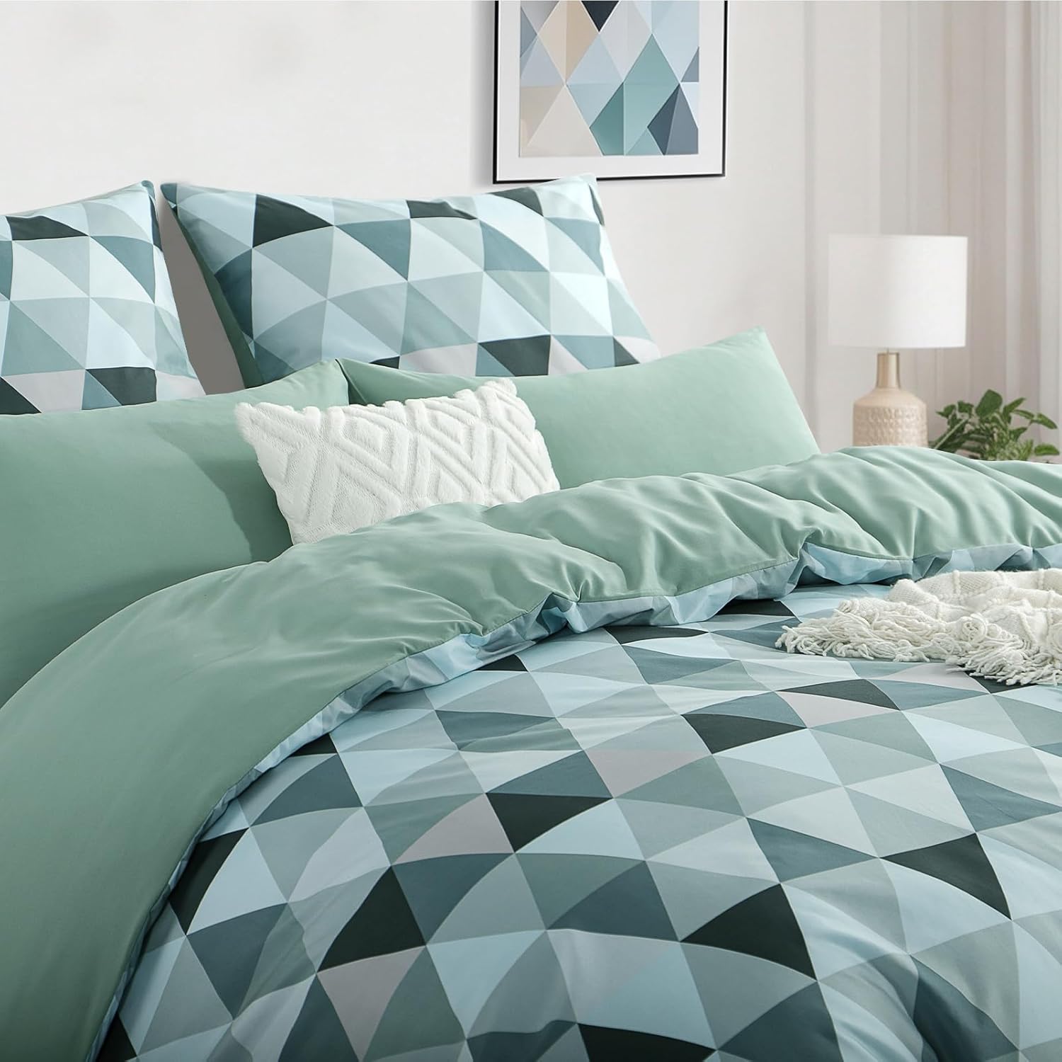 Спално бельо RUIKASI 220 x 240 см, 3 части, зелено - калъф за завивка 220 x 240 см с триъгълник, комплекти спално бельо от микрофибър 220 x 240 см с цип, меко и не се глади