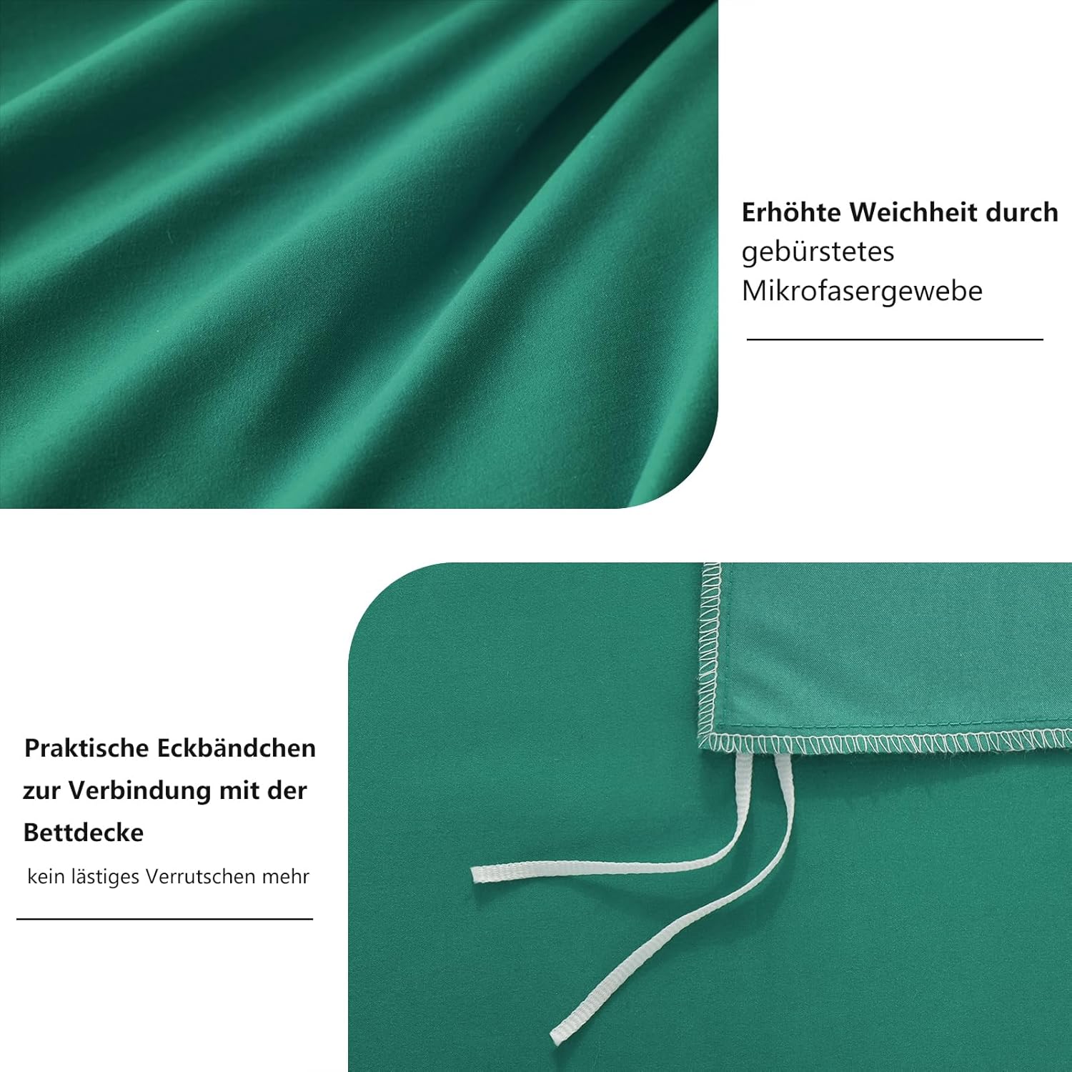 Спално бельо RUIKASI, 220 x 240 см, 3 части, зелено, комплект пликове за завивки, с калъфки за възглавници, комплект спално бельо, микрофибър, с цип, меко и не се глади