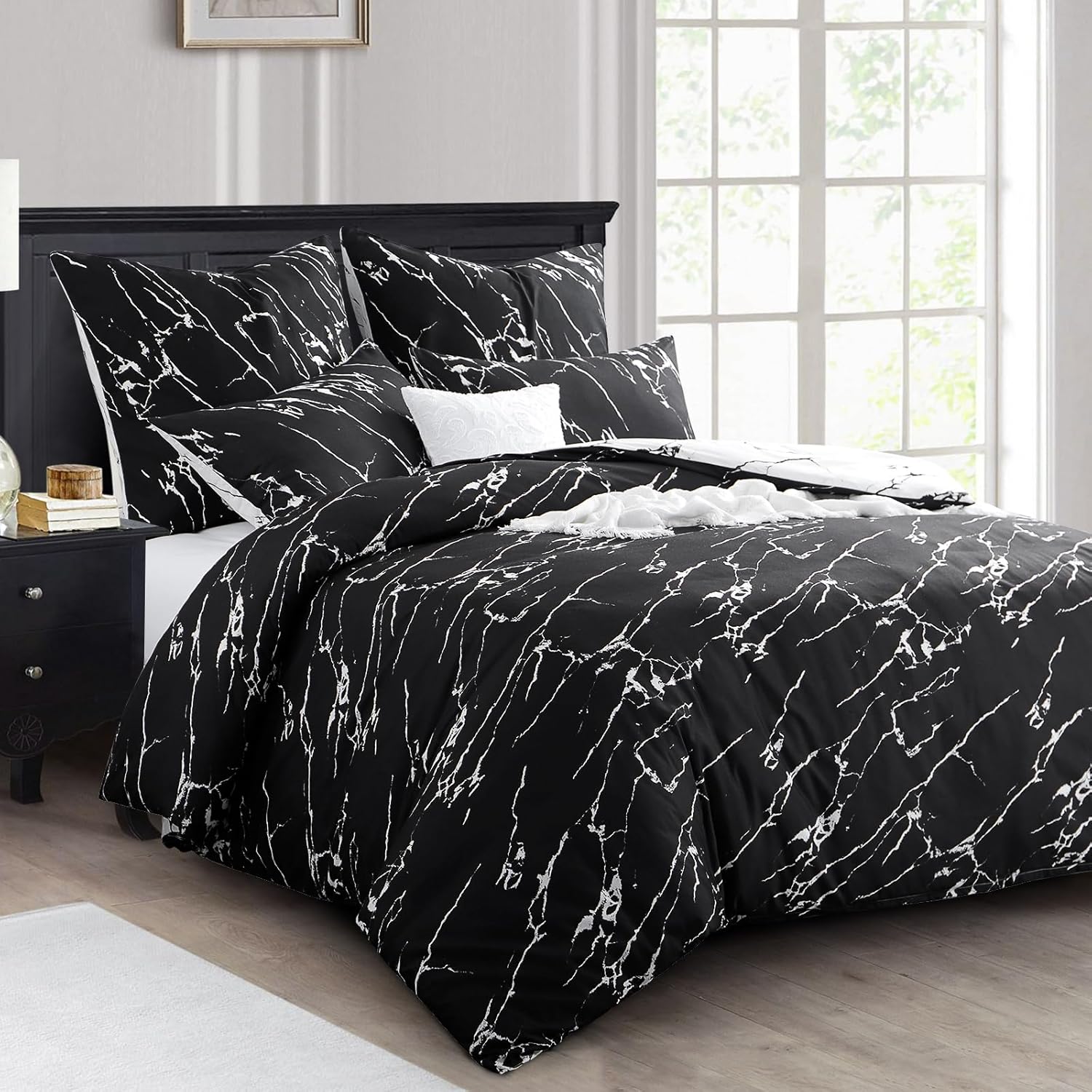 Спално бельо RUIKASI 220 x 240 см, Комплект от 3 микрофибърни калъфки за завивки 220 x 240 см с калъфки за възглавници с мраморен мотив, Спални комплекти с цип, меки и нежелаещи