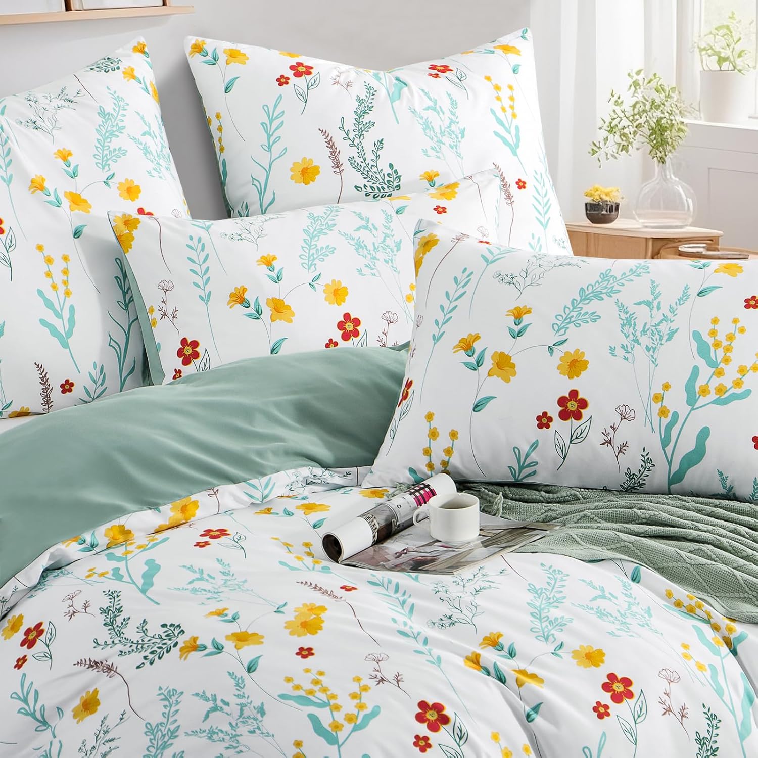 Спално бельо RUIKASI 220 x 240 см Цветя, градински чай, зелено - калъф за завивка от 3 части с флорален мотив 240 x 220 см, комплект спално бельо от микрофибър с флорален мотив и 2 калъфки за възглавници 80 x 80 см, с цип, меко и не се глади
