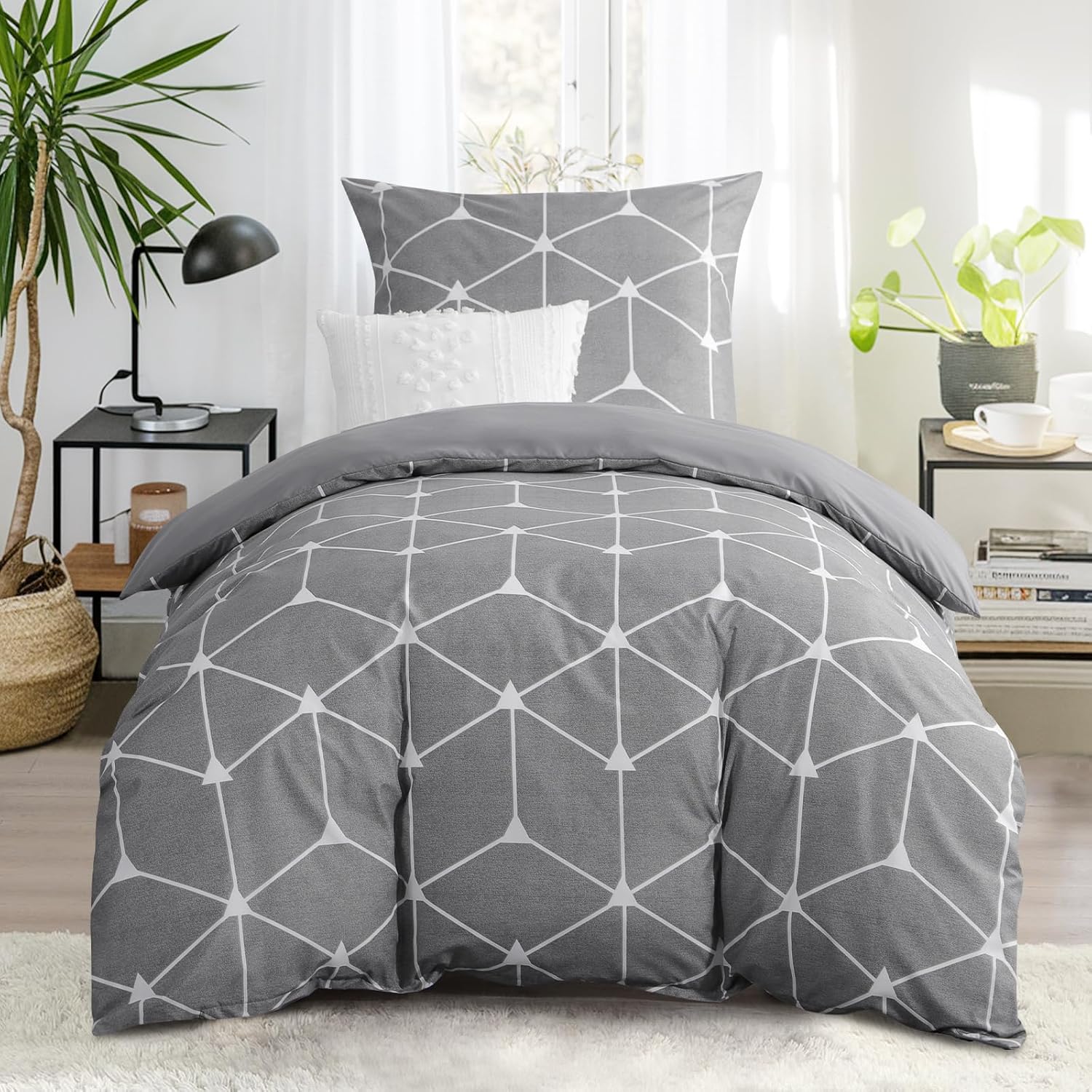 • С тези красиви комплекти спално бельо, вашата завивка и възглавница са защитени от замърсяване. Освен това, комплектът спално бельо от 4 части с размери 135 x 200 см се отличава с лесна поддръжка и може да се пере в пералня до 60°C, подходящ за сушене в сушилня.