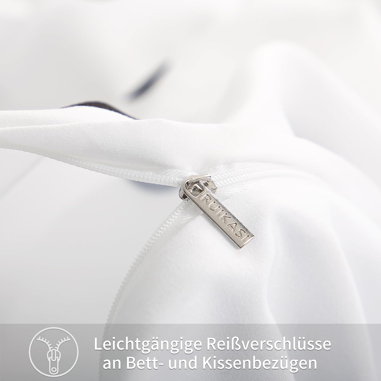 Спално бельо Ruikasi от 100% първокласен микрофибър, изработено от две страни в различен шикозен и модерен стил, ще ви накара да изглеждате страхотно в личната си спалня; елегантен и очарователен вид за спокойна атмосфера.