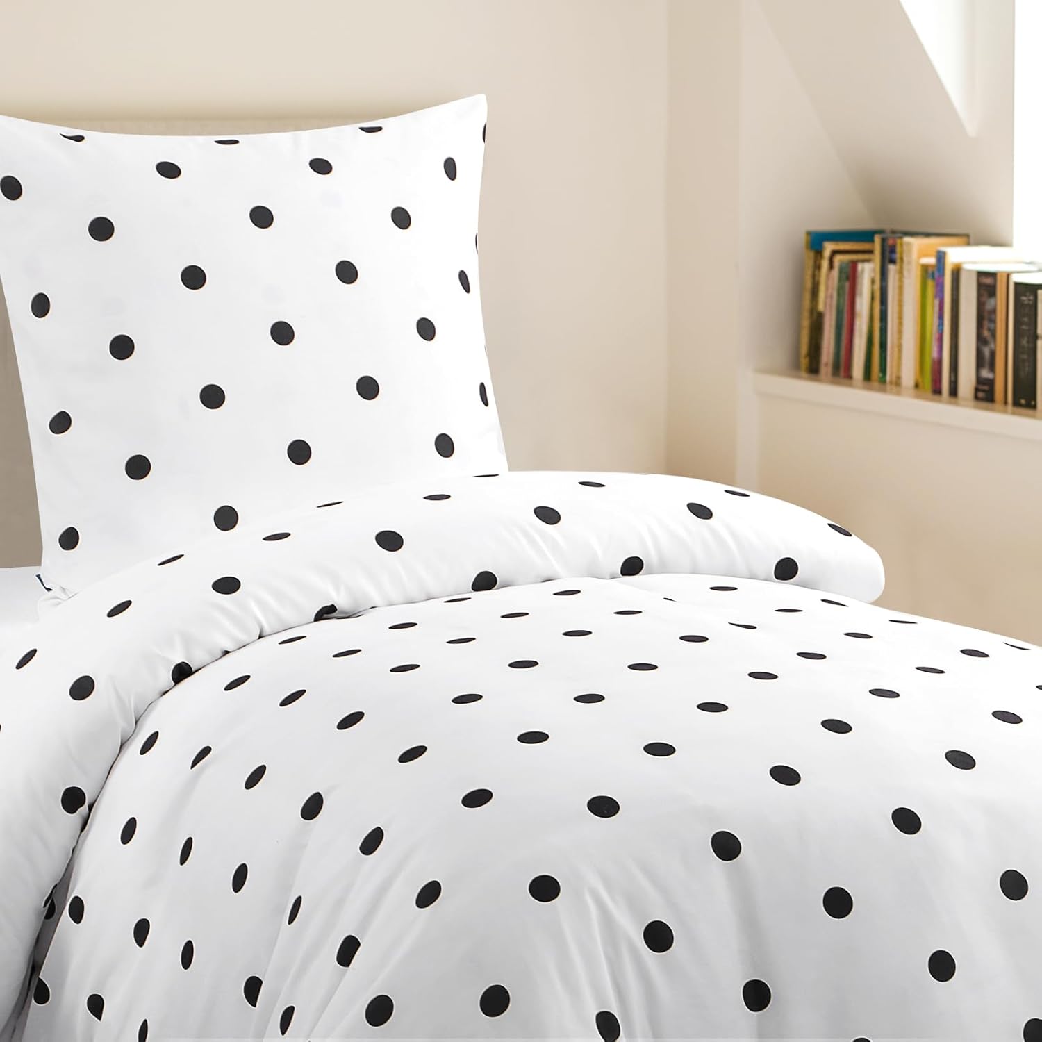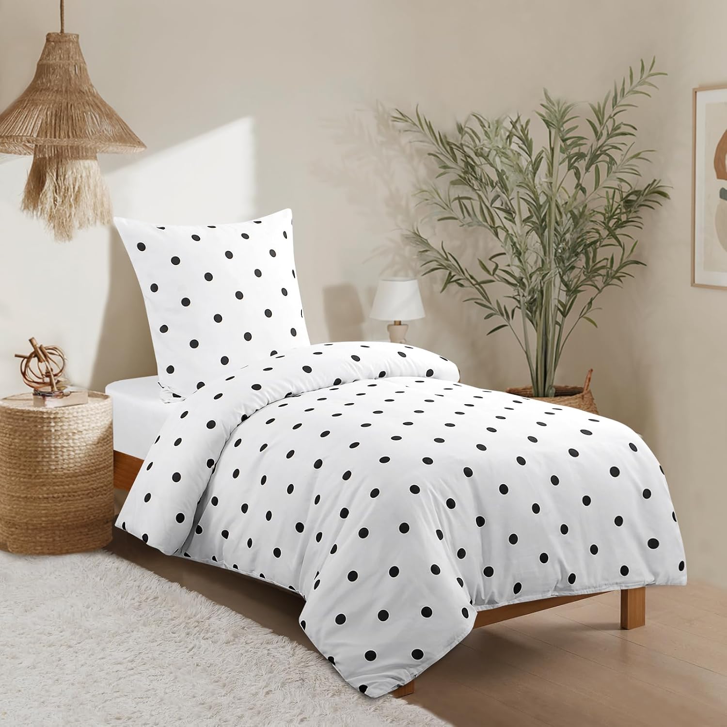 Спално бельо RUIKASI от 2 части, 155 x 220 см, бяло, калъф за завивка 155 x 220 см, комплект с шарка на точки, комплекти спално бельо 155 x 220 см, изработено от микрофибър с цип, меко и не се глади