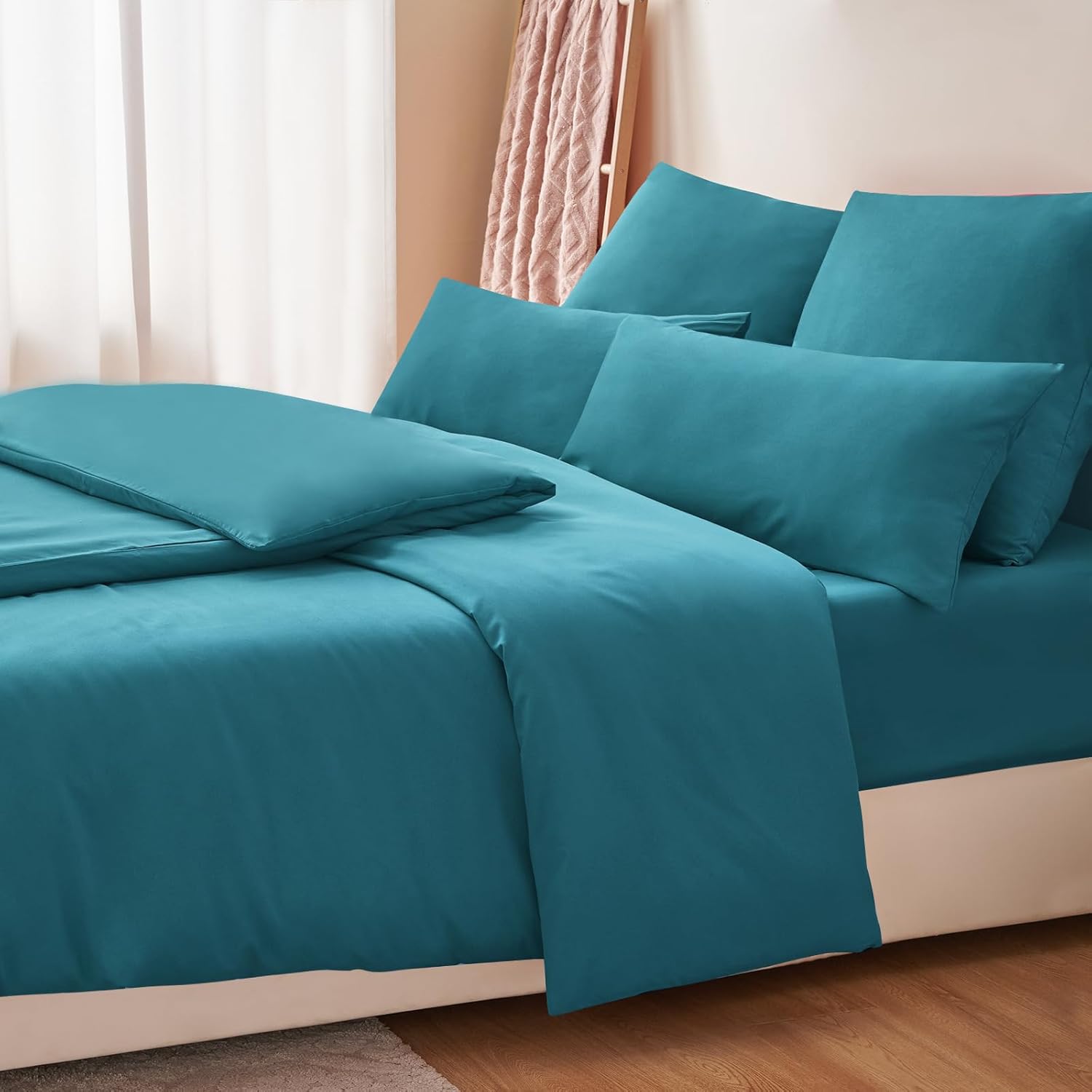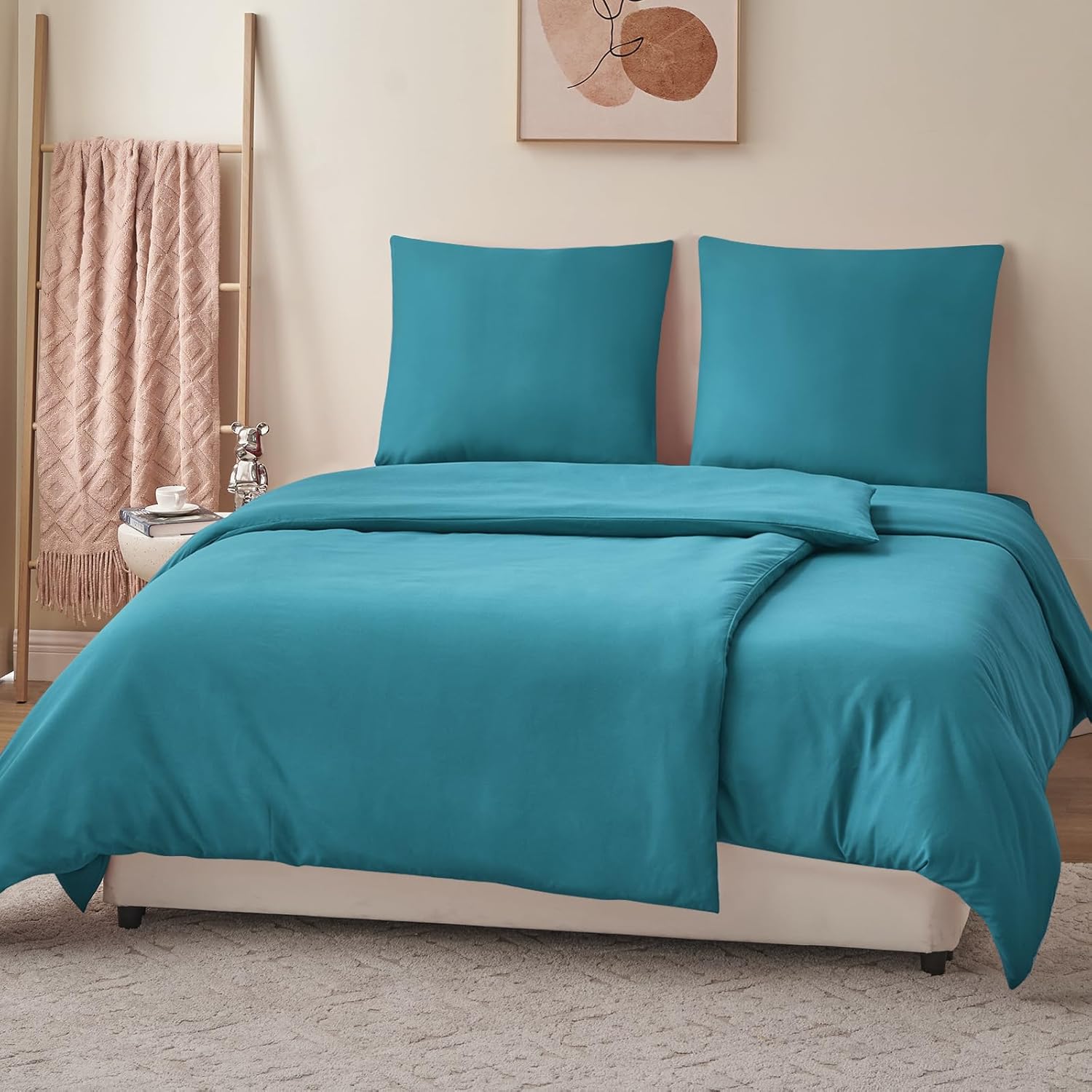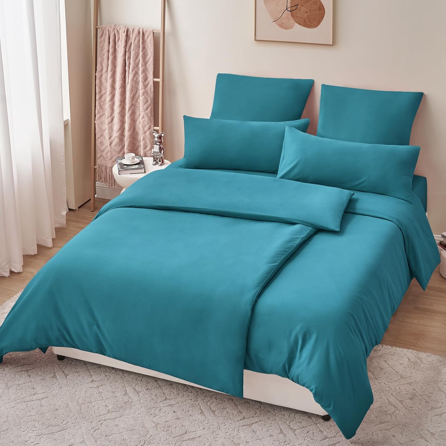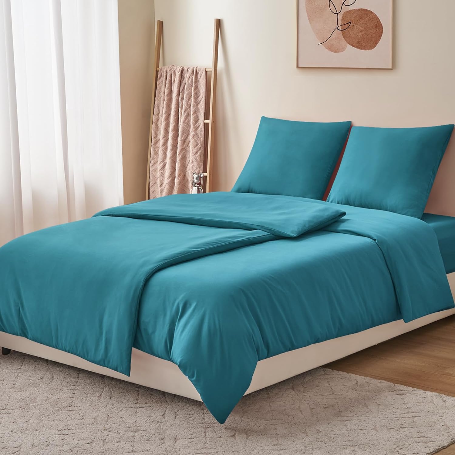 Спално бельо RUIKASI от 4 части, 135 x 200 см, Тюркоазено, Плик за завивка 135 x 200 см, Комплект от 2 с калъфки за възглавници, Комплекти спално бельо 135 x 200 см, Изработено от микрофибър с цип, Меко и нежелаещо гладене