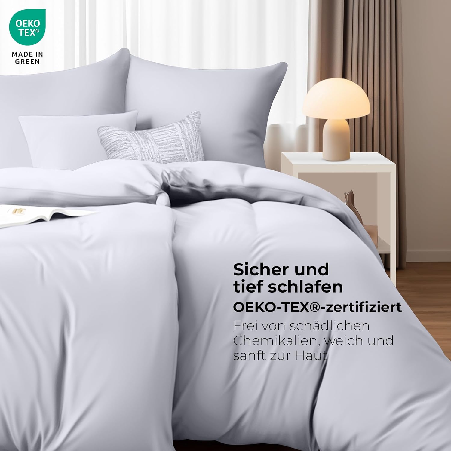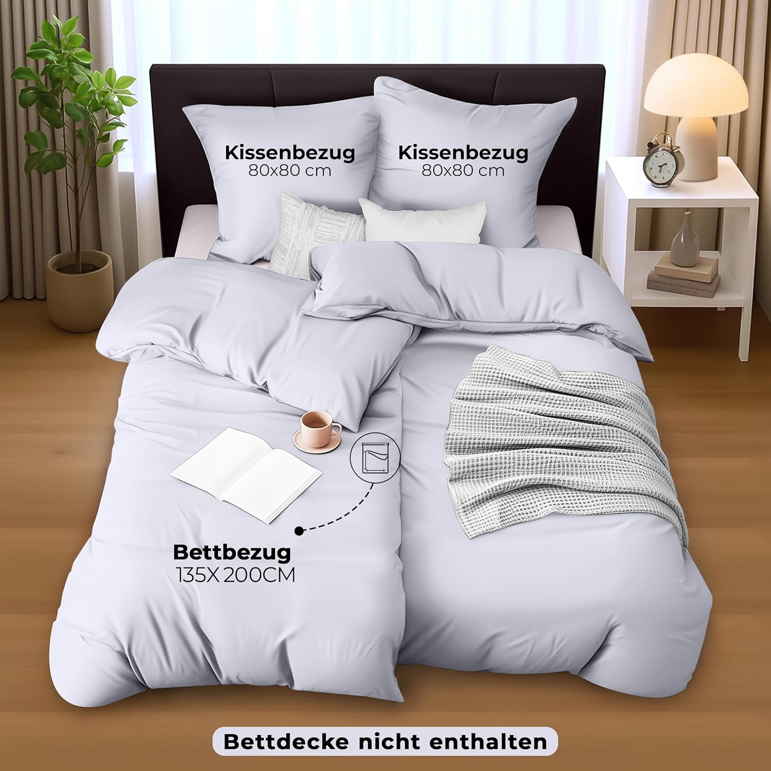 Внесете луксозно усещане в леглото си с този комплект завивки от микрофибър в едноцветен цвят. Този комплект завивки с едноцветна тъкан се предлага в два цвята - сив и бял - и ще се съчетае безпроблемно със съществуващия ви комплект спално бельо. Комплектът включва калъф за завивка със скрит цип и една калъфка за възглавница. Сега можете удобно да закупите основно спално бельо в един пакет, вместо да купувате всеки артикул поотделно. Често е по-евтино да купите завивка, отколкото всичко поотделно.
