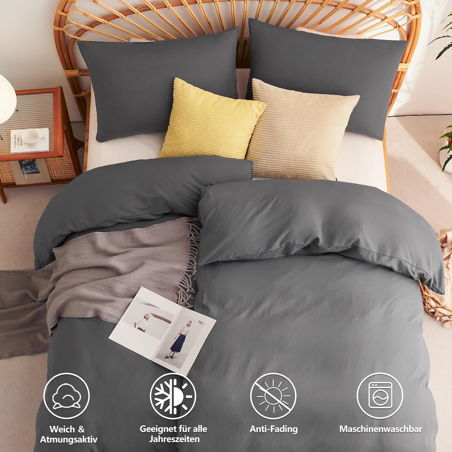 Машинно пране със студена вода и сушене в сушилня на ниска температура. Калъфът е с мека намачкана текстура, така че не е необходимо гладене.