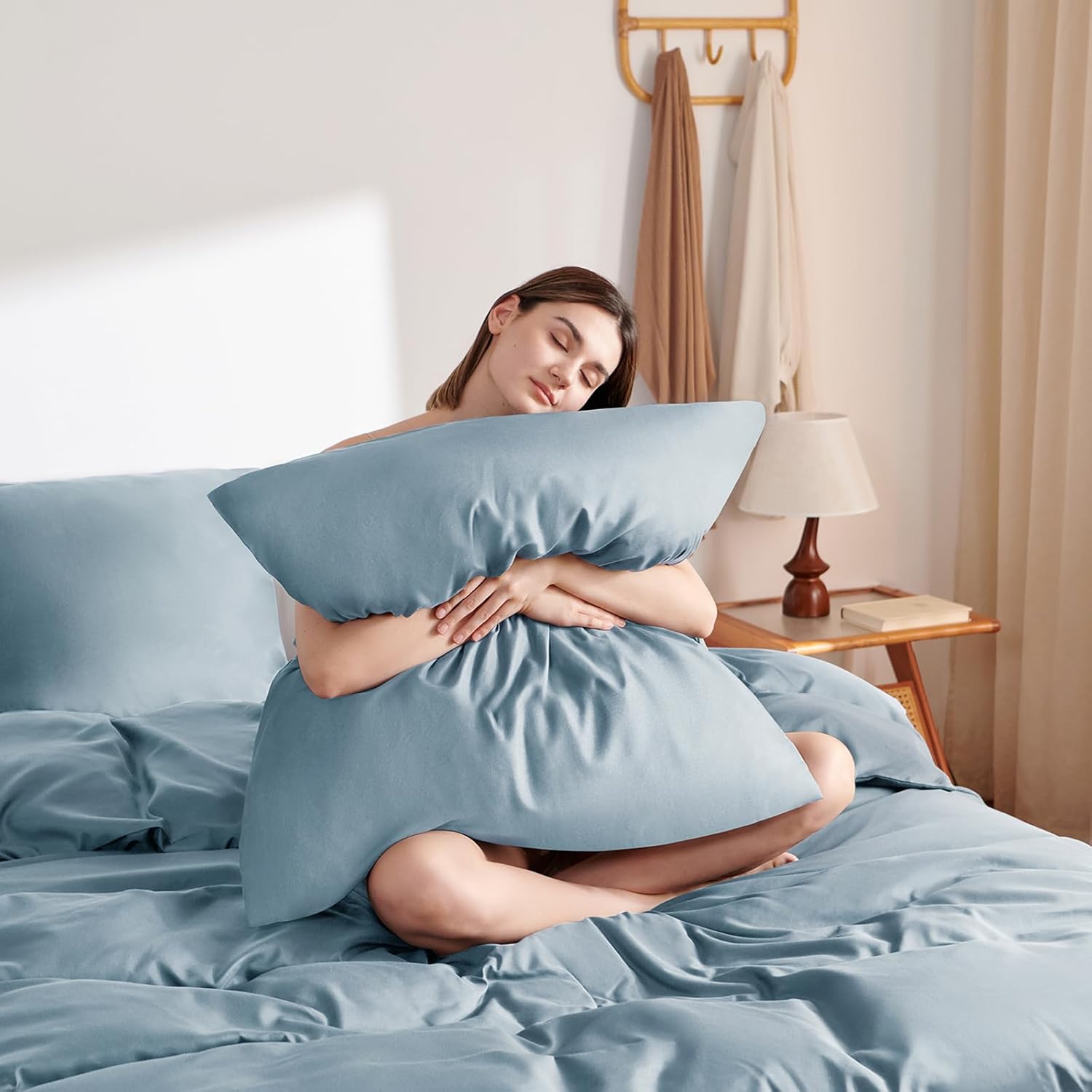 Машинно пране със студена вода и сушене в сушилня на ниска температура. Калъфът е с мека намачкана текстура, така че не е необходимо гладене.