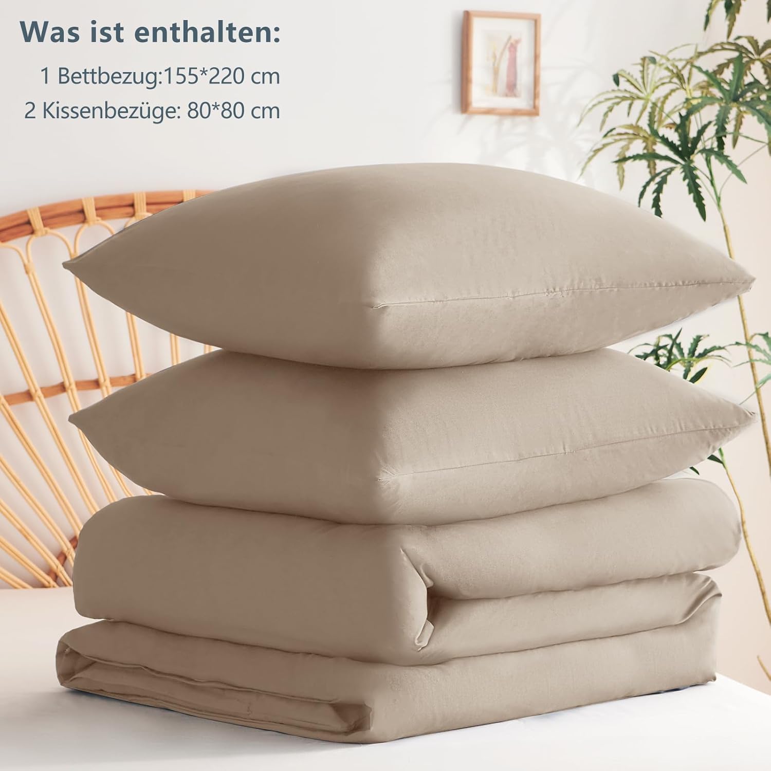 Машинно пране със студена вода и сушене в сушилня на ниска температура. Калъфът е с мека намачкана текстура, така че не е необходимо гладене.