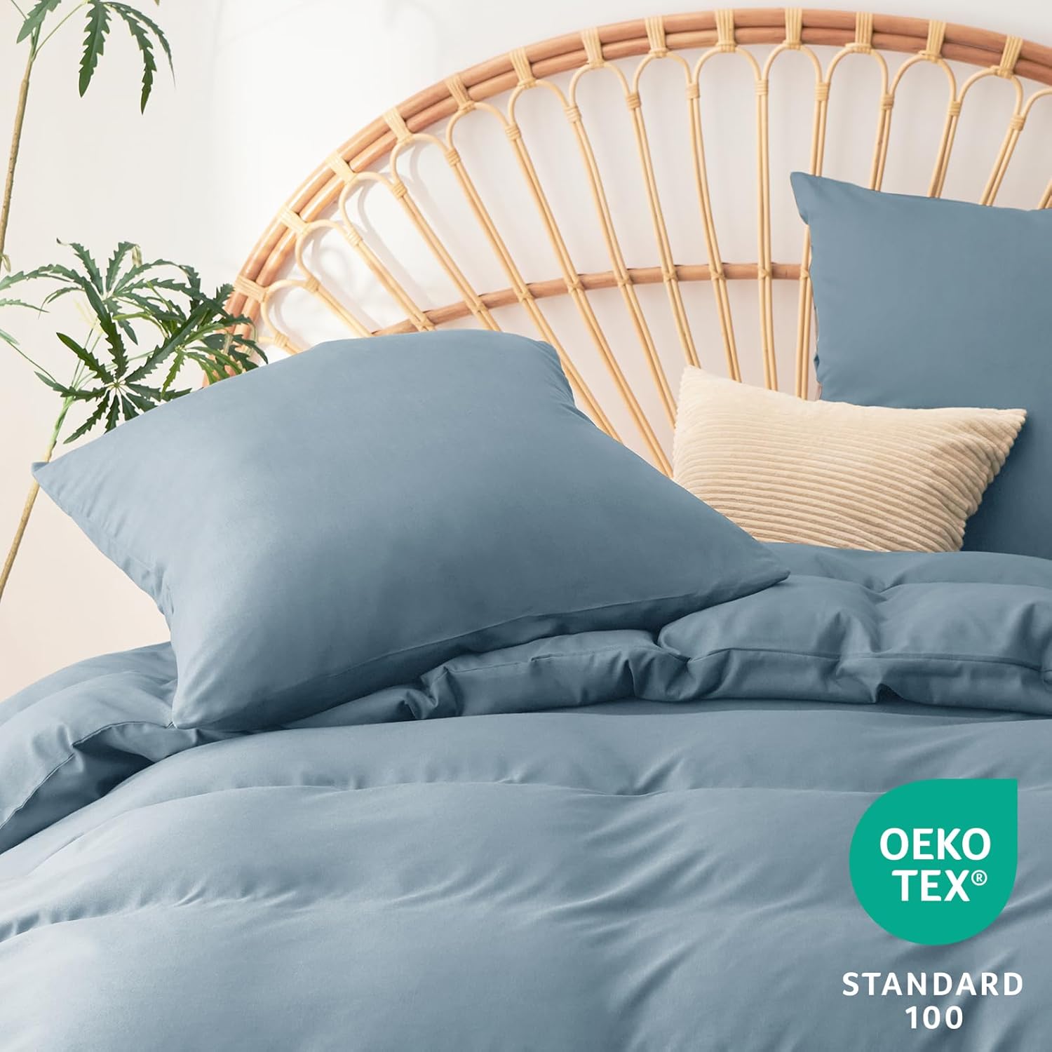 Машинно пране със студена вода и сушене в сушилня на ниска температура. Калъфът е с мека намачкана текстура, така че не е необходимо гладене.