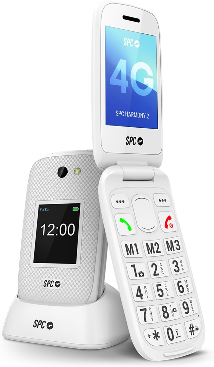 SPC Harmony 2-4G мобилен телефон за възрастни, големи бутони, 4G и двоен дисплей против надраскване (2,8 инча + 1,77 инча), бутон за спешни повиквания и леден профил, сила на звука 104 dB и съвместимост със слухови апарати