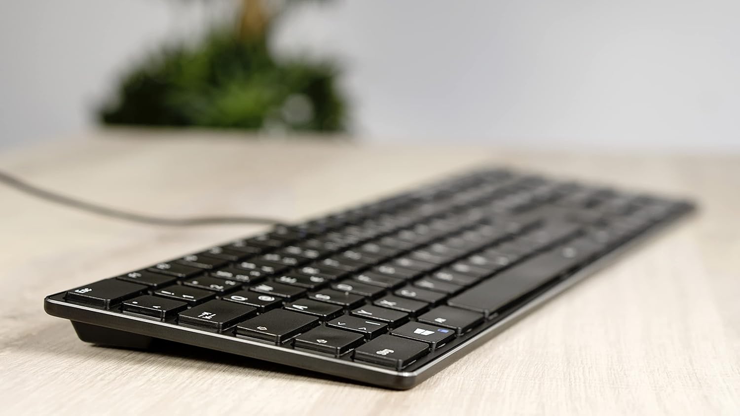 Die Verbindung der Tastatur erfolgt kabelgebunden über ein 1,5 Meter langes Kabel mit USB-A Anschluss. Das Kabel ist im Lieferumfang enthalten.