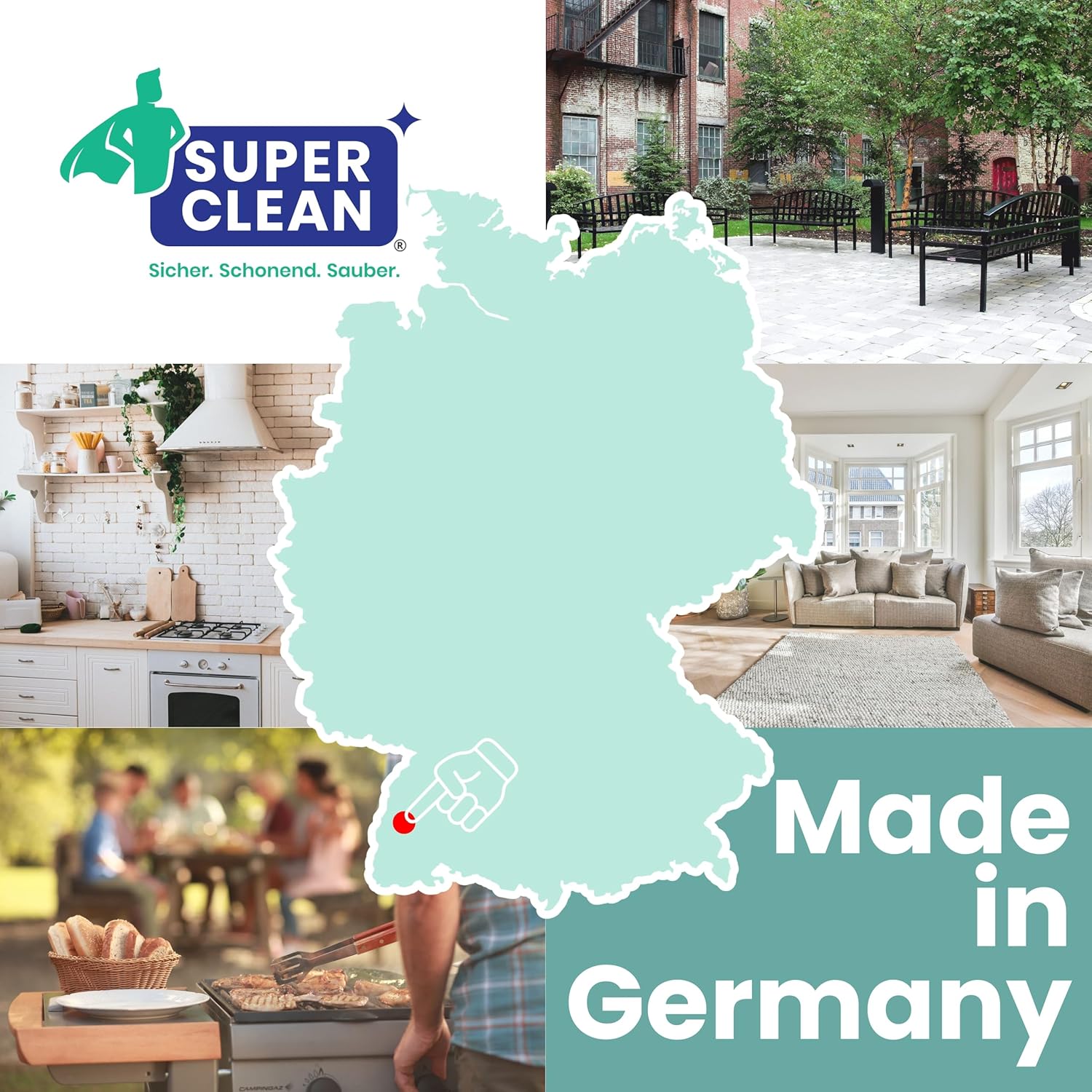 • SUPER CLEAN Препарат за почистване на тапицерии и килими за надеждно почистване на дивани, фотьойли, килими, тапицерии, калъфи за седалки и автомобилни седалки.