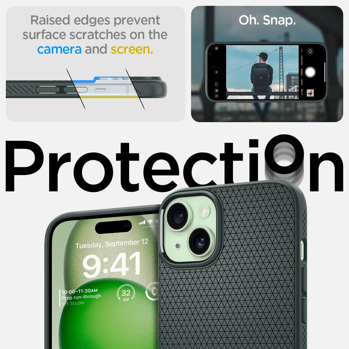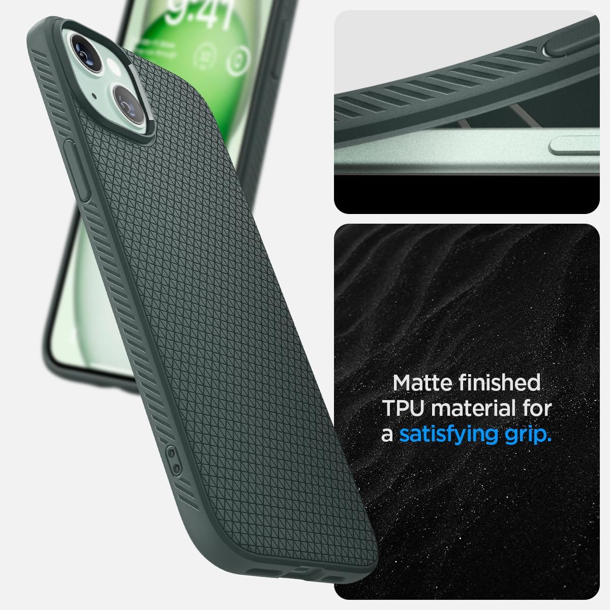 Spigen Case за iPhone 15, Liquid Air Case, защитен калъф за мобилен телефон, тънък, с тънък цвят, зелен, Abyss