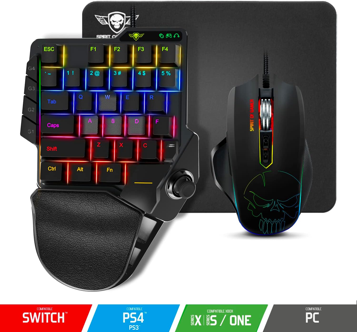 Spirit of Gamer - Xpert G900 конвертор - пакет 3 в 1 RGB клавиатура + мишка + подложка за мишка за PS4, Xbox S/X/ONE и PC конзоли - опто-механична клавиатура с едноръчен превключвател, червена - мишка 7 бутона, 3200 DPI