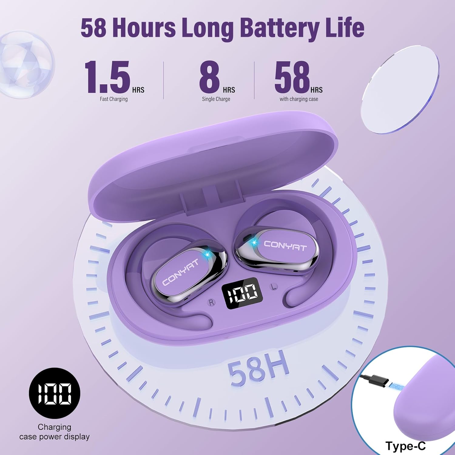 Спортни слушалки Conyat с отворено ухо, 2025 Bluetooth 5.4 слушалки, слушалки с отворено ухо с ENC, 58 часа време на възпроизвеждане, Bluetooth слушалки с микрофон/LED дисплей, IPX7 слушалки за спорт, за пътуване до работа / спорт