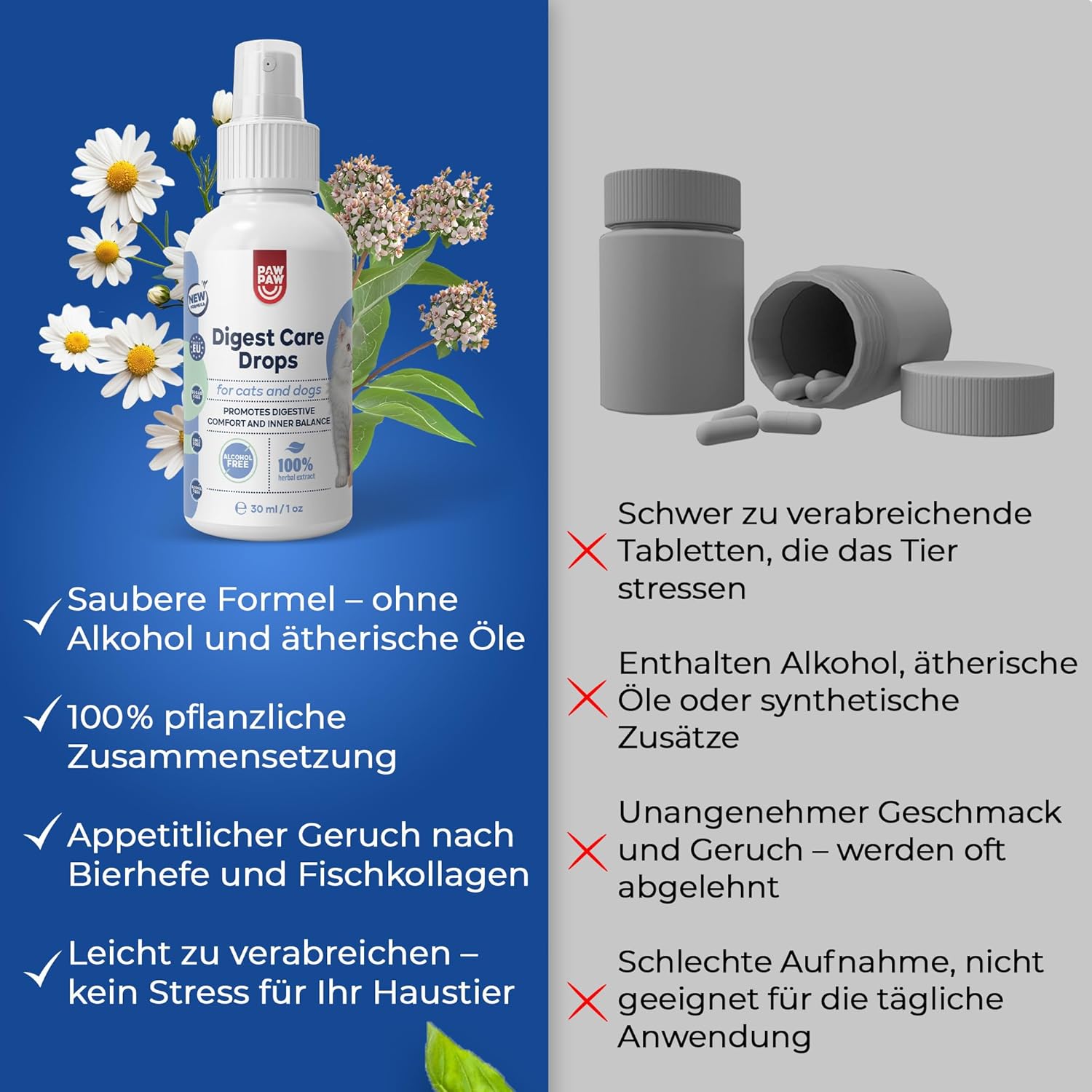 • ТЕЧНА ФОРМА ВМЕСТО ПАСТА: Течната форма позволява безстресово приложение без таблетки или принуда; просто напръскайте върху храната в питейната вода или директно в устата.