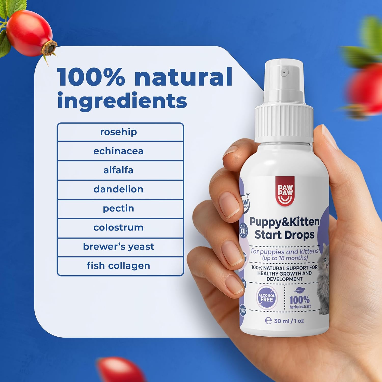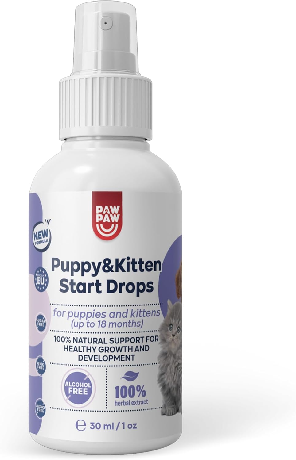 Спрей за стартиране на храненето на кученца и котенца за кучета и котки. Течна допълнителна храна за растеж и развитие. Лесно приложение върху храна, вода или директно в устата. 30 мл (200+ впръсквания)