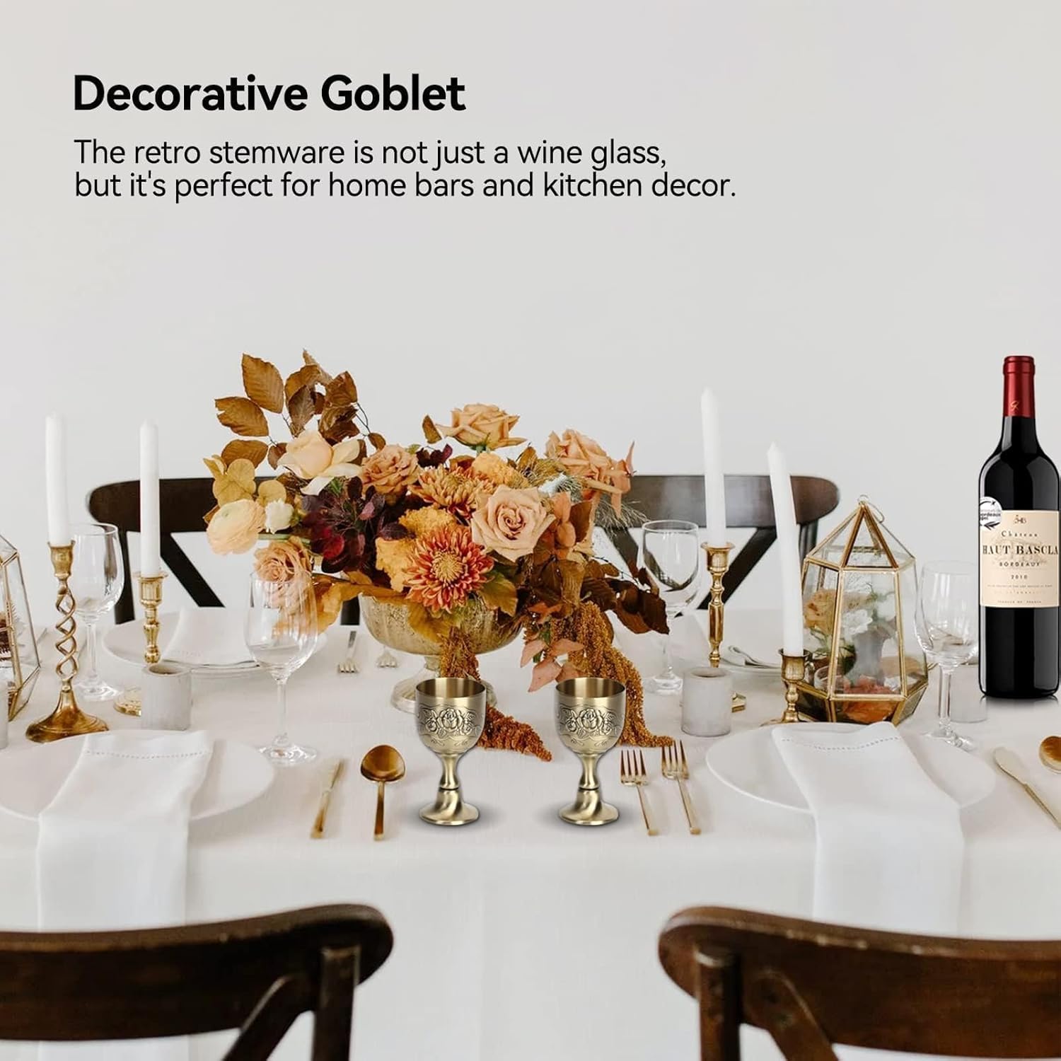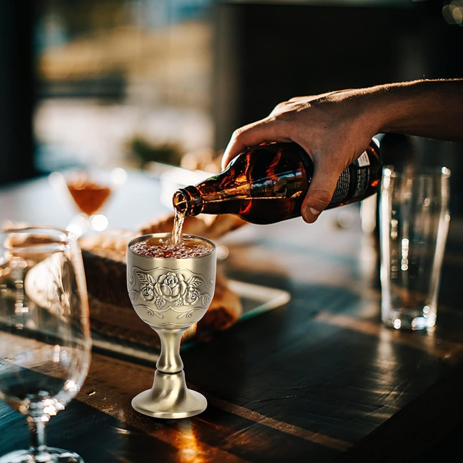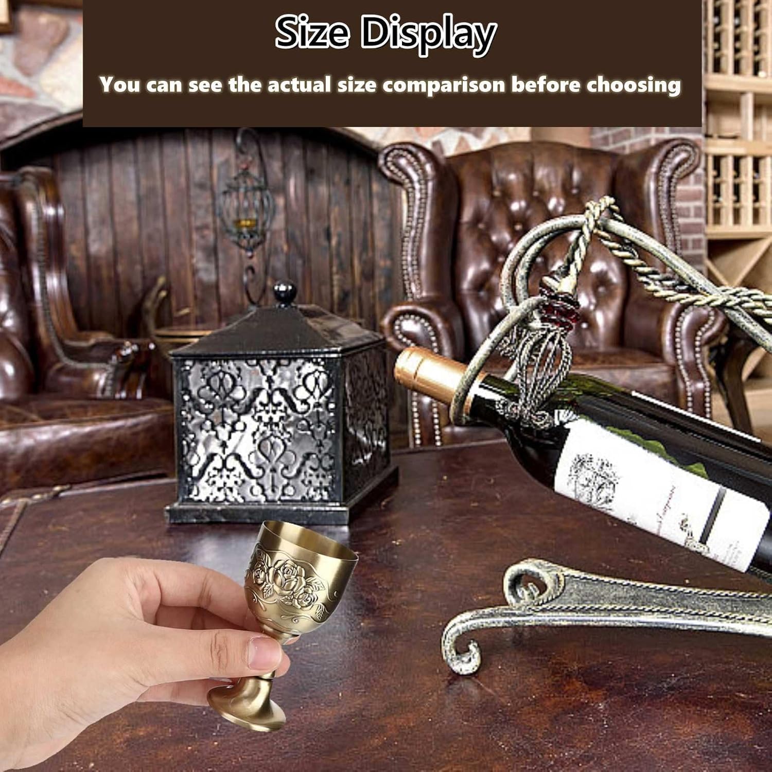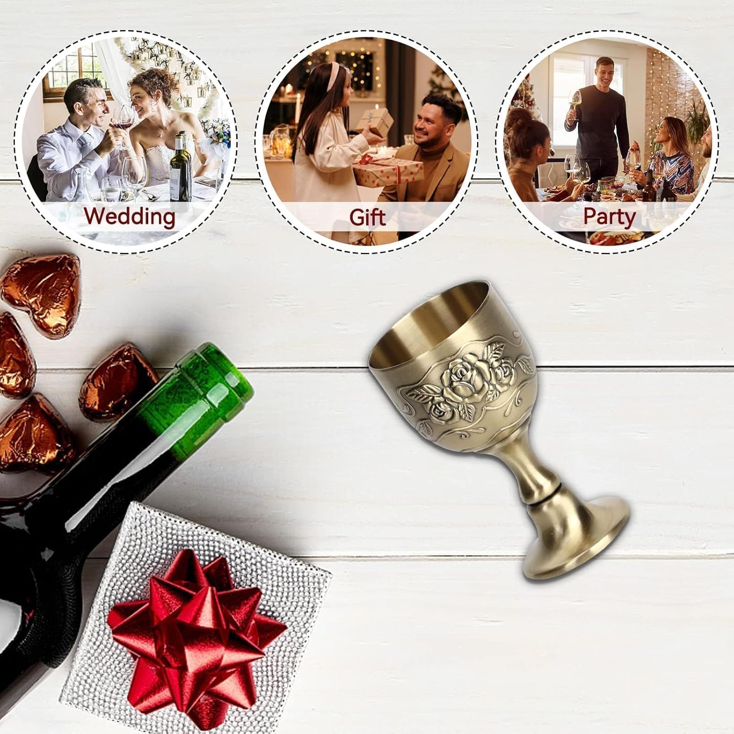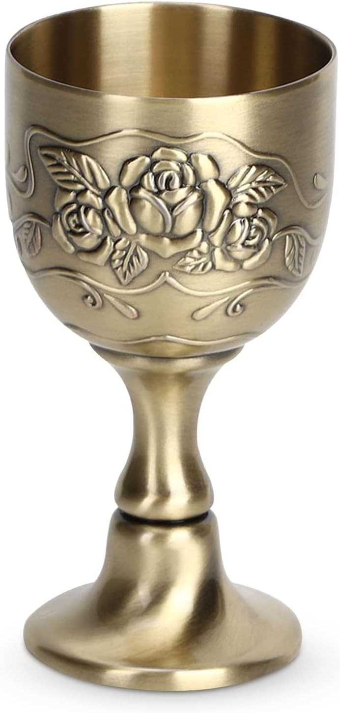 РЕЛЕФНА ИЗРАБОТКА: Чаша за вино от чиста мед, ретро-европейски стил, красива и издръжлива. Ръчно изработена с гравирана флорална декорация, заварен държач и полирана повърхност.