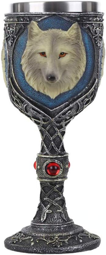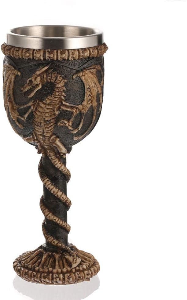 Материал: Чаша за вино с череп, изработена от метал и смола.