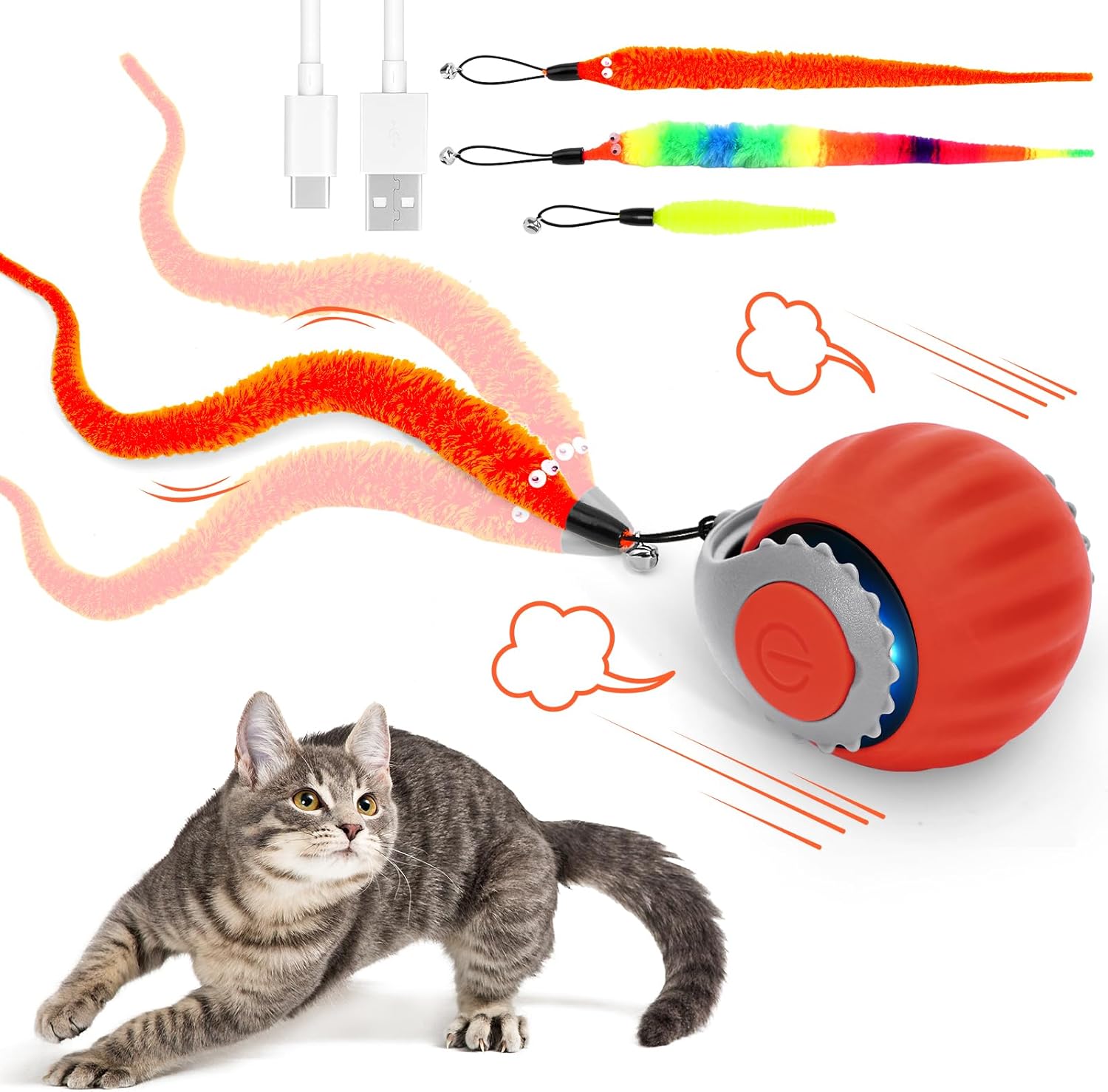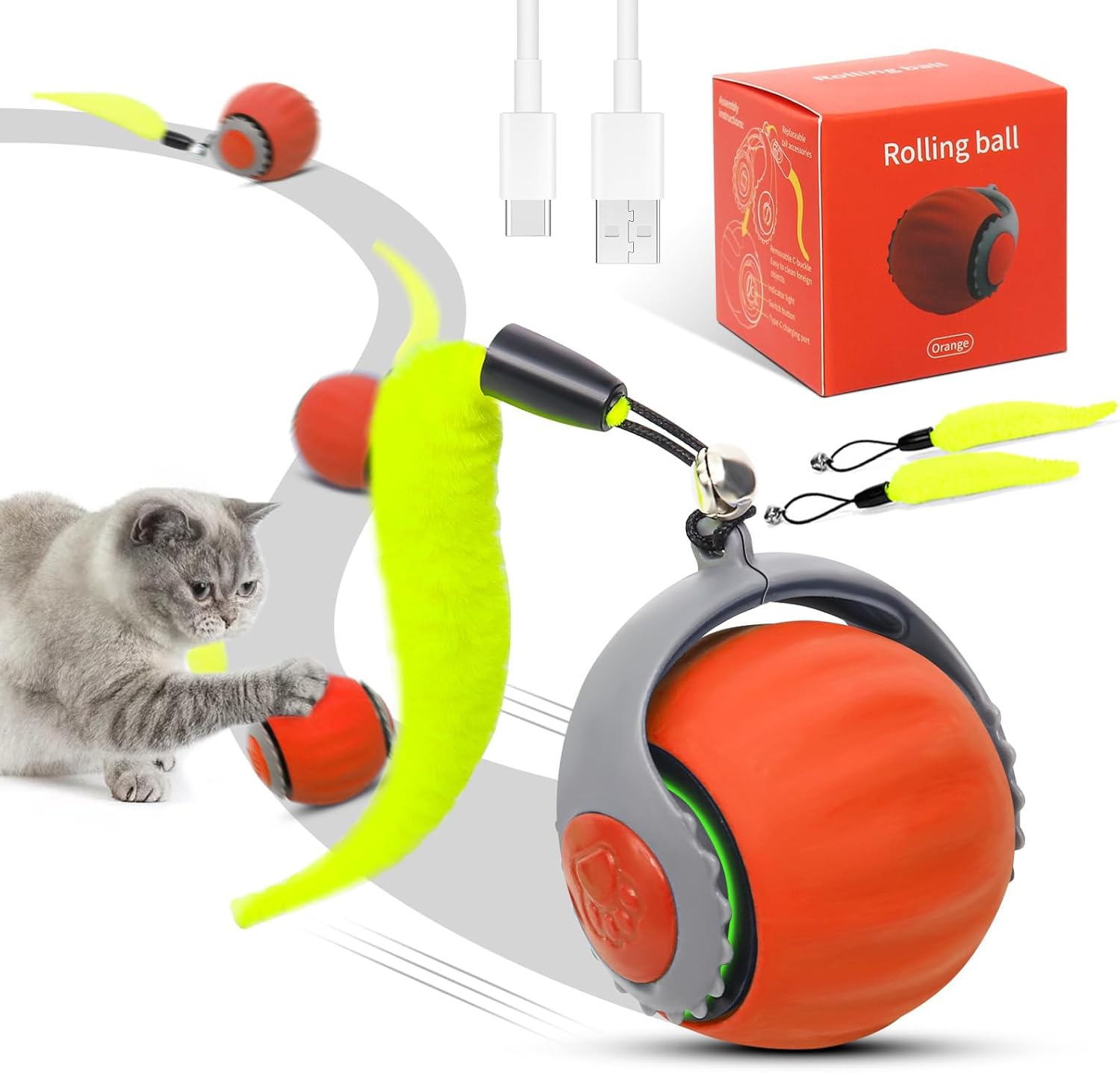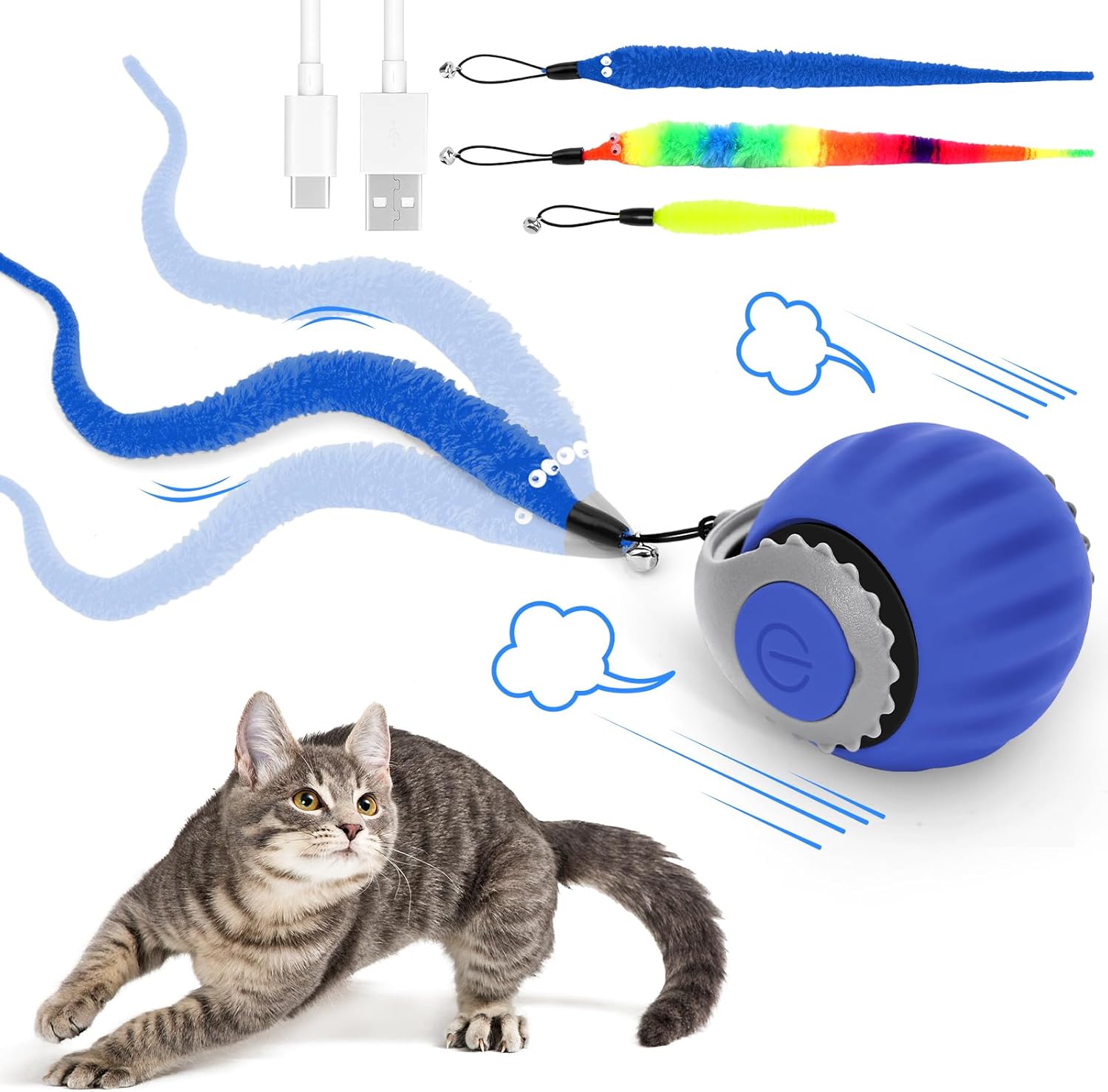 Starnearby 2025 Speedy Tail 3.0 Пакет от 2 Интерактивна играчка-топка за котки Електрическа интерактивна топка за игра за котки Chase Master Pro Играчка-топка за котки с 4 резервни опашки (синя + оранжева)