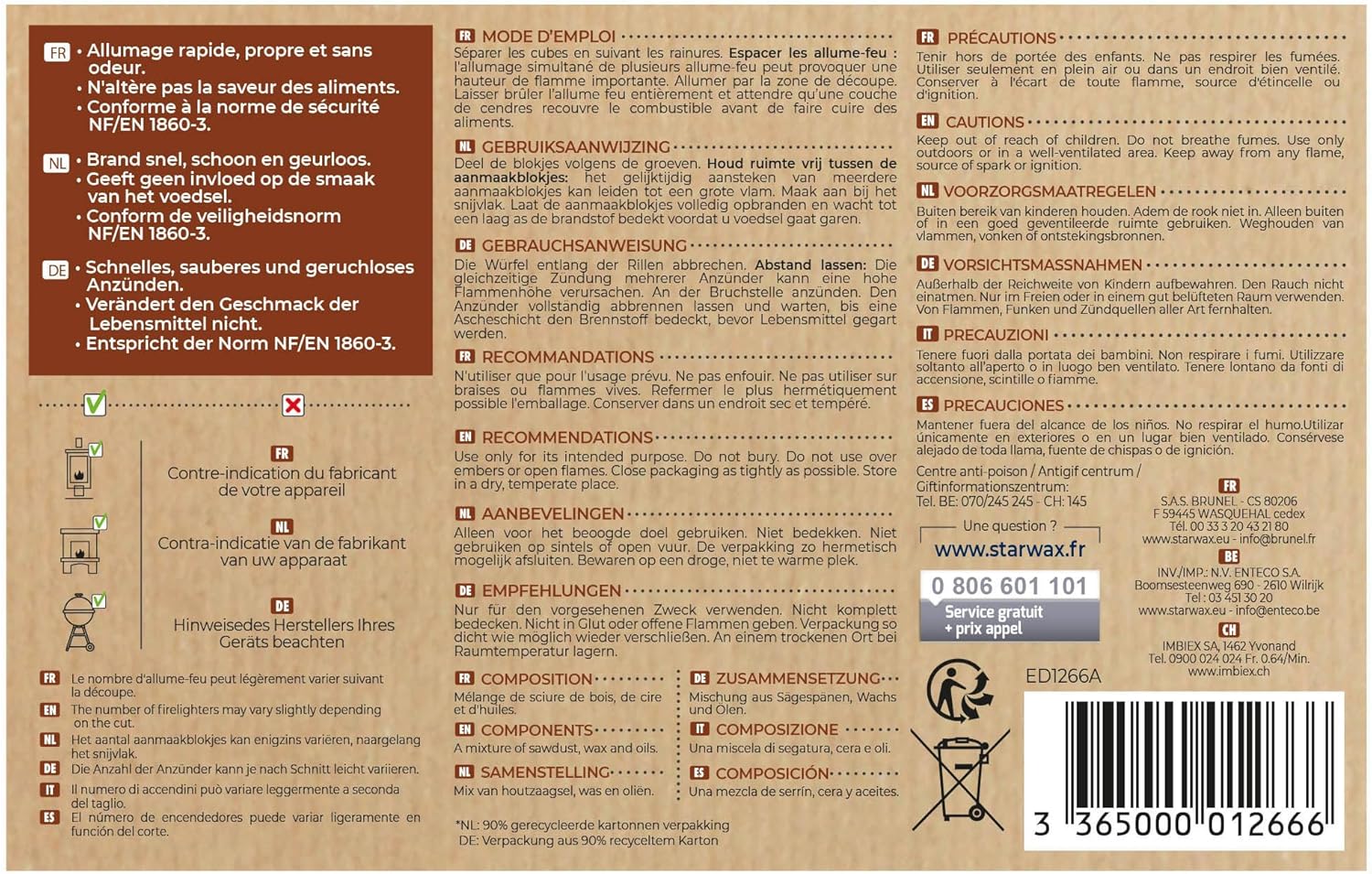 STARWAX - Осветяващ куб - Време на горене до 10 минути - Бързо запалване - Не влияе на вкуса на храната - PEFC - 32 куба, бежов