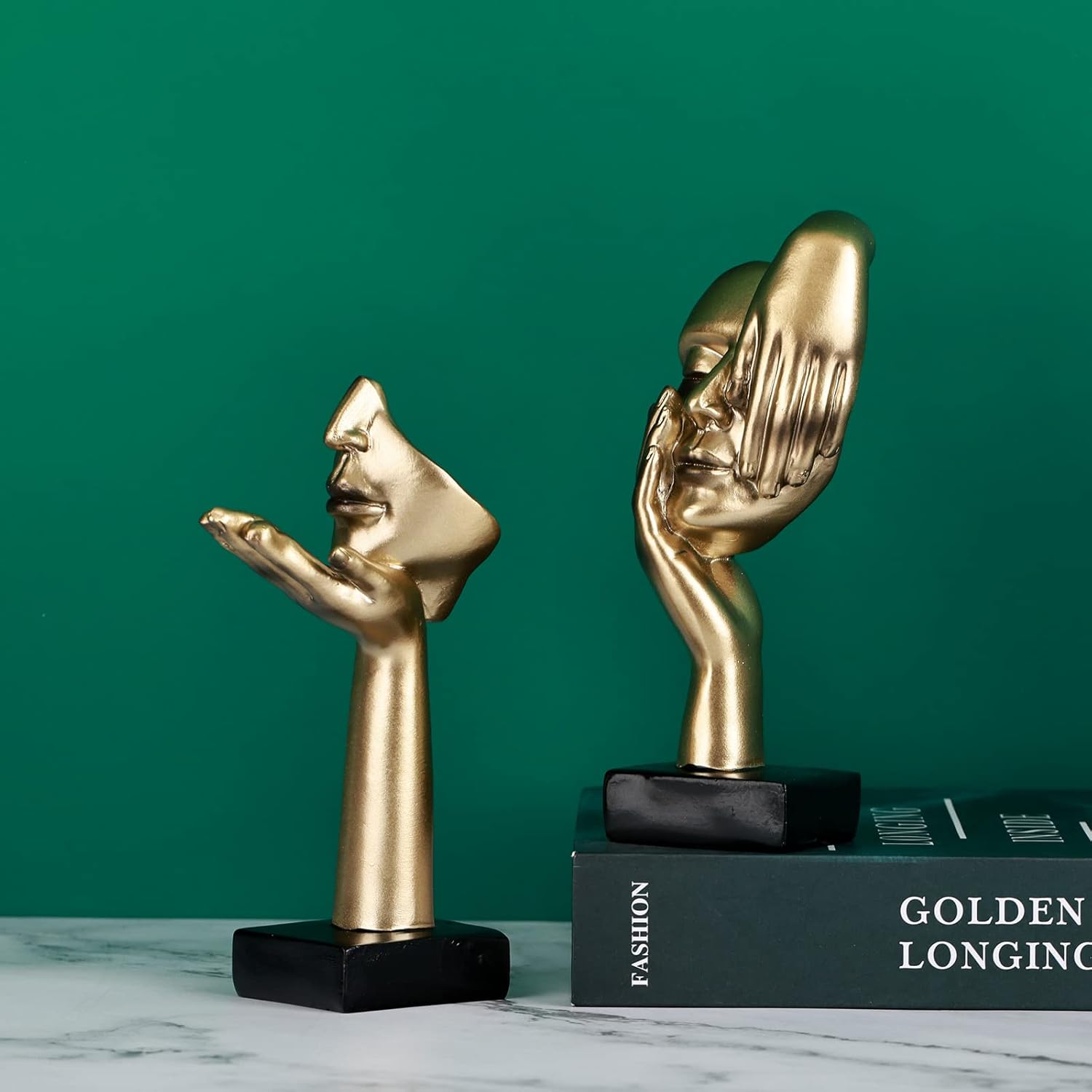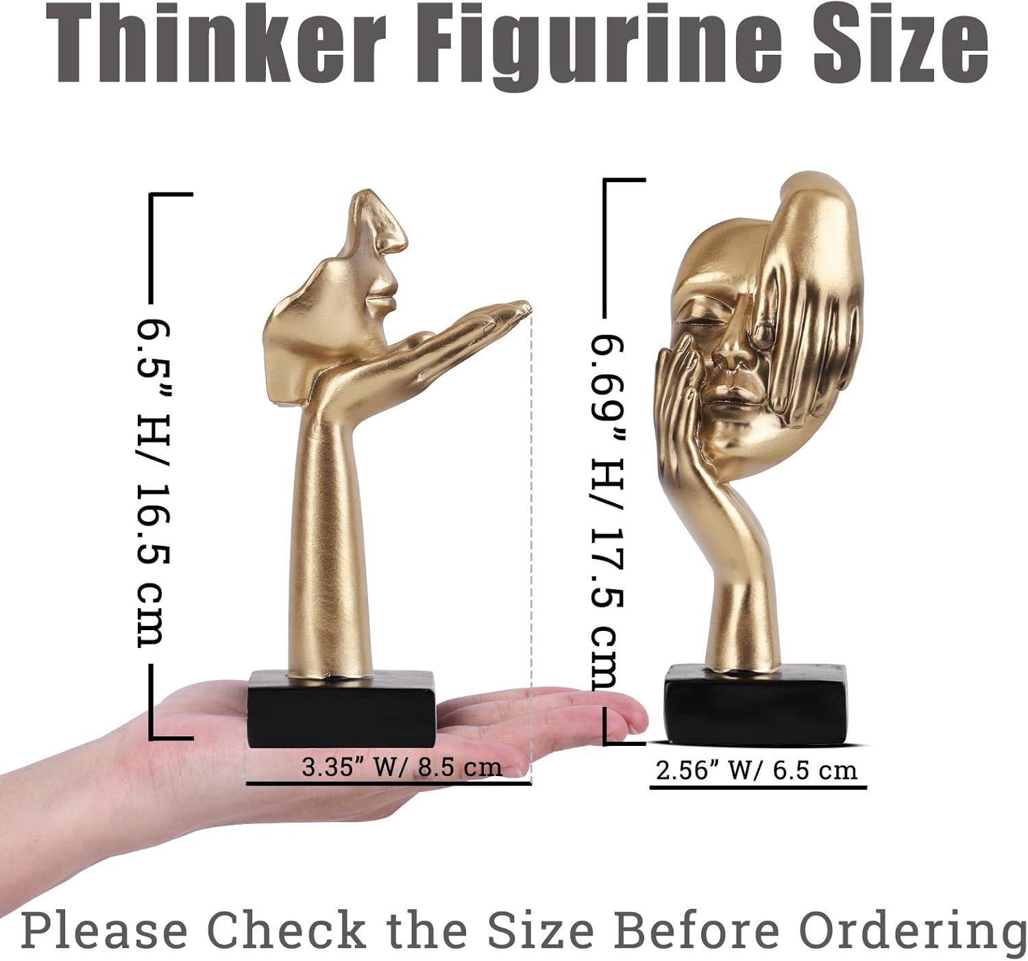 Статуя на Мислител от 2 части, Златисто-черна абстрактна художествена скулптура, Модерен домашен декор, Декорация за бюро, Коледен, Новогодишен подарък (2 части, златисти)