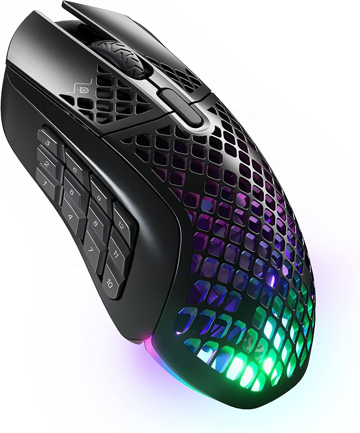 SteelSeries Aerox 9 Wireless - RGB геймърска мишка с вентилационни отвори - Лека като перо, водоустойчива конструкция - 18 бутона - Bluetooth/2.4 GHz - Оптичен сензор TrueMove Air с 18 000 DPI