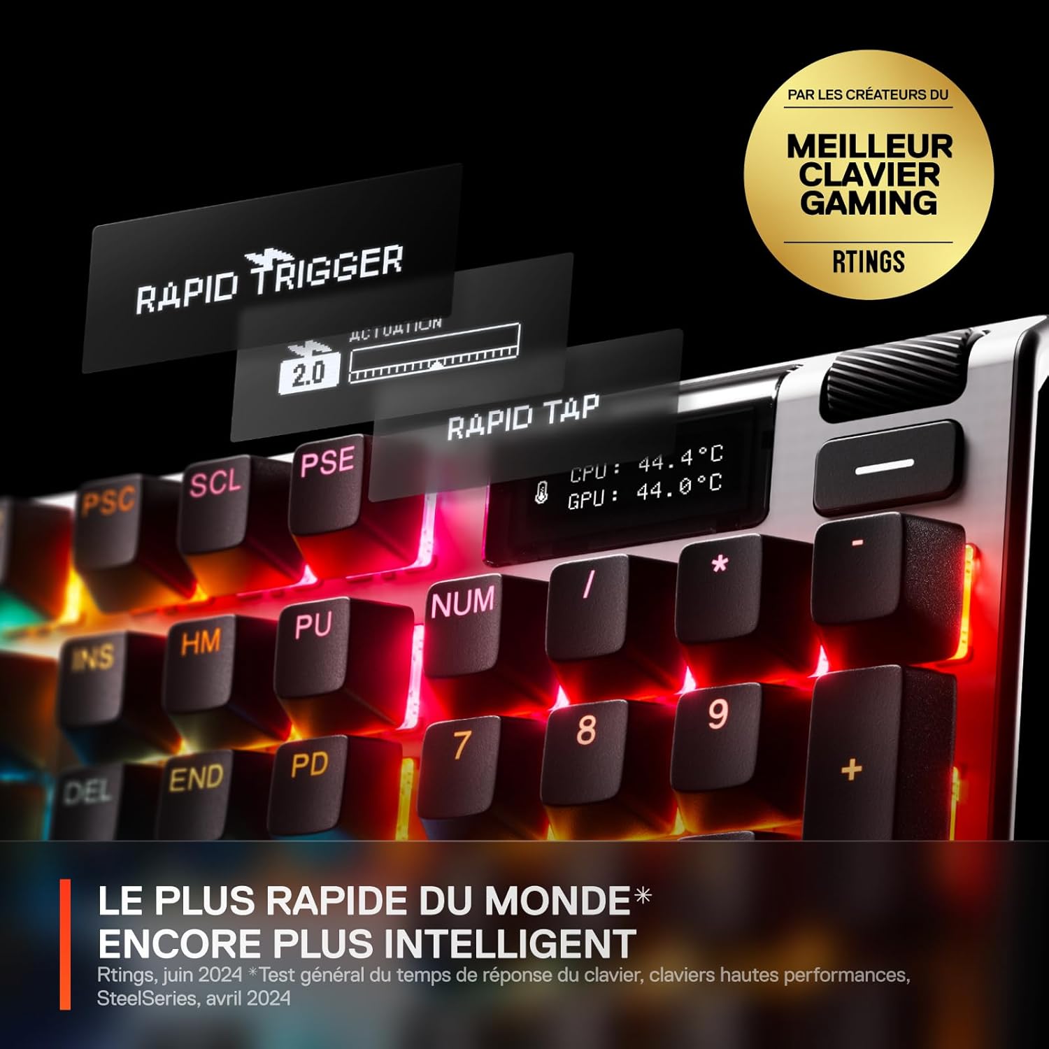 SteelSeries Apex Pro Gen 3 - Хипермагнитна геймърска клавиатура - OmniPoint 3.0 превключватели - Регулируема реакция - Бързо задействане - Бързо докосване/SOCD - OLED - RGB - PBT капачки на клавишите - FR оформление AZERTY