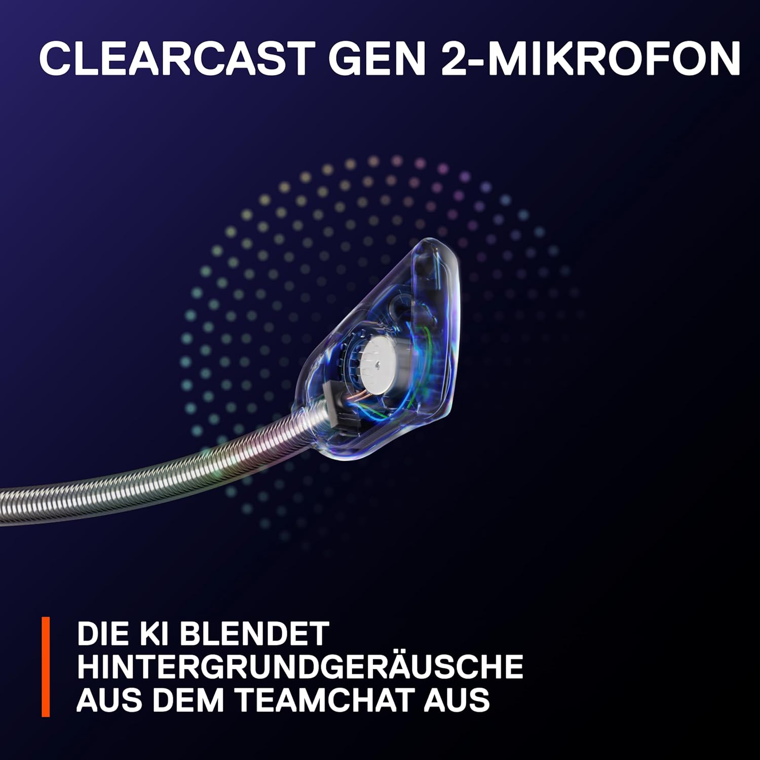 • Микрофон с шумопотискане, захранван от изкуствен интелект – Микрофонът ClearCast Gen 2 използва мощните алгоритми с изкуствен интелект на софтуера Sonar, за да филтрира околния шум и да оптимизира улавянето на глас. Можете също така да приберете микрофона напълно, ако е необходимо.