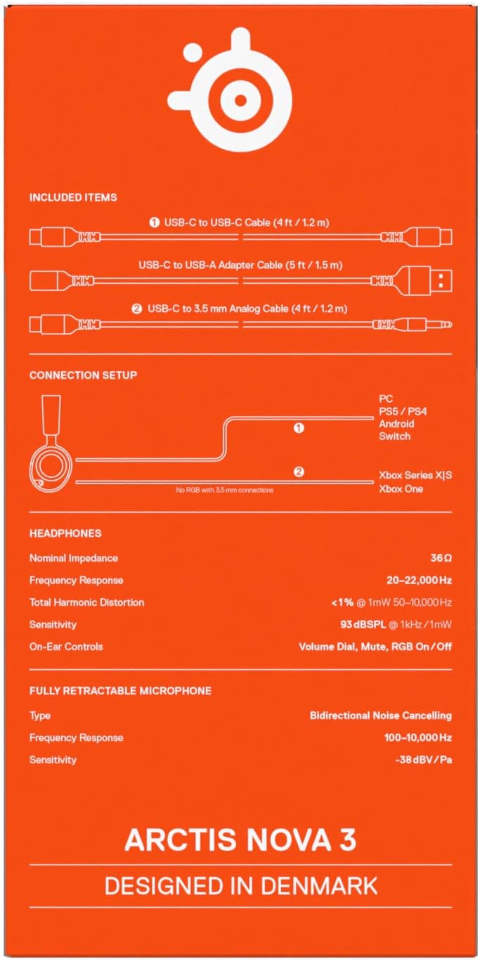 SteelSeries Arctis Nova 3 - Многосистемни геймърски слушалки – Hi-Fi драйвери – 360° съраунд звук – RGB осветление – Наушници от мемори пяна – Ултралеки – Микрофон ClearCast Gen 2 – PC, PS5, PS4, Switch