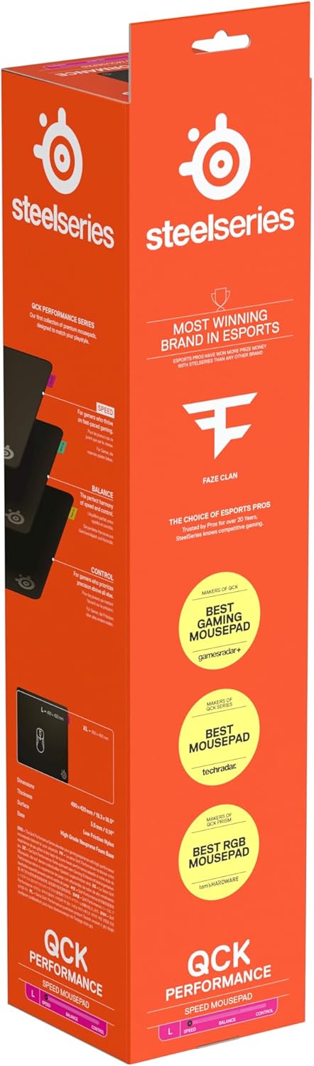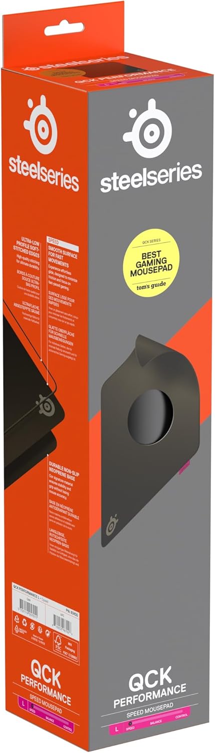 SteelSeries QcK L Performance Speed ​​​​Геймърска подложка за мишка - Допълнителна плътност за плавно плъзгане - Плоски шевове по подгъвите - Неплъзгаща се неопренова гумена основа - 490 x 420 мм - FPS, MOBA, RTS, MMO