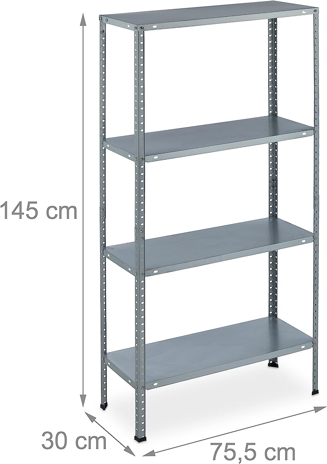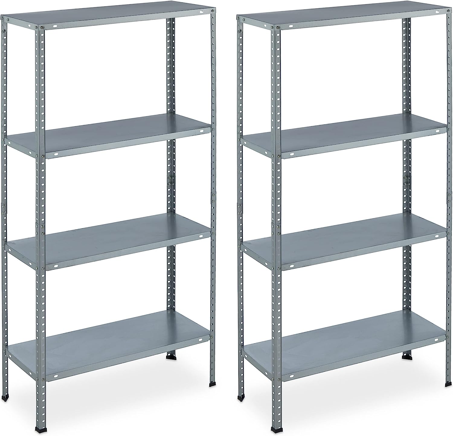 Стелажи с рафтове Relaxdays, 145 x 75.5 x 30 см, С по 4 рафта, Натоварване до 160 кг, Стомамени, Сребристи