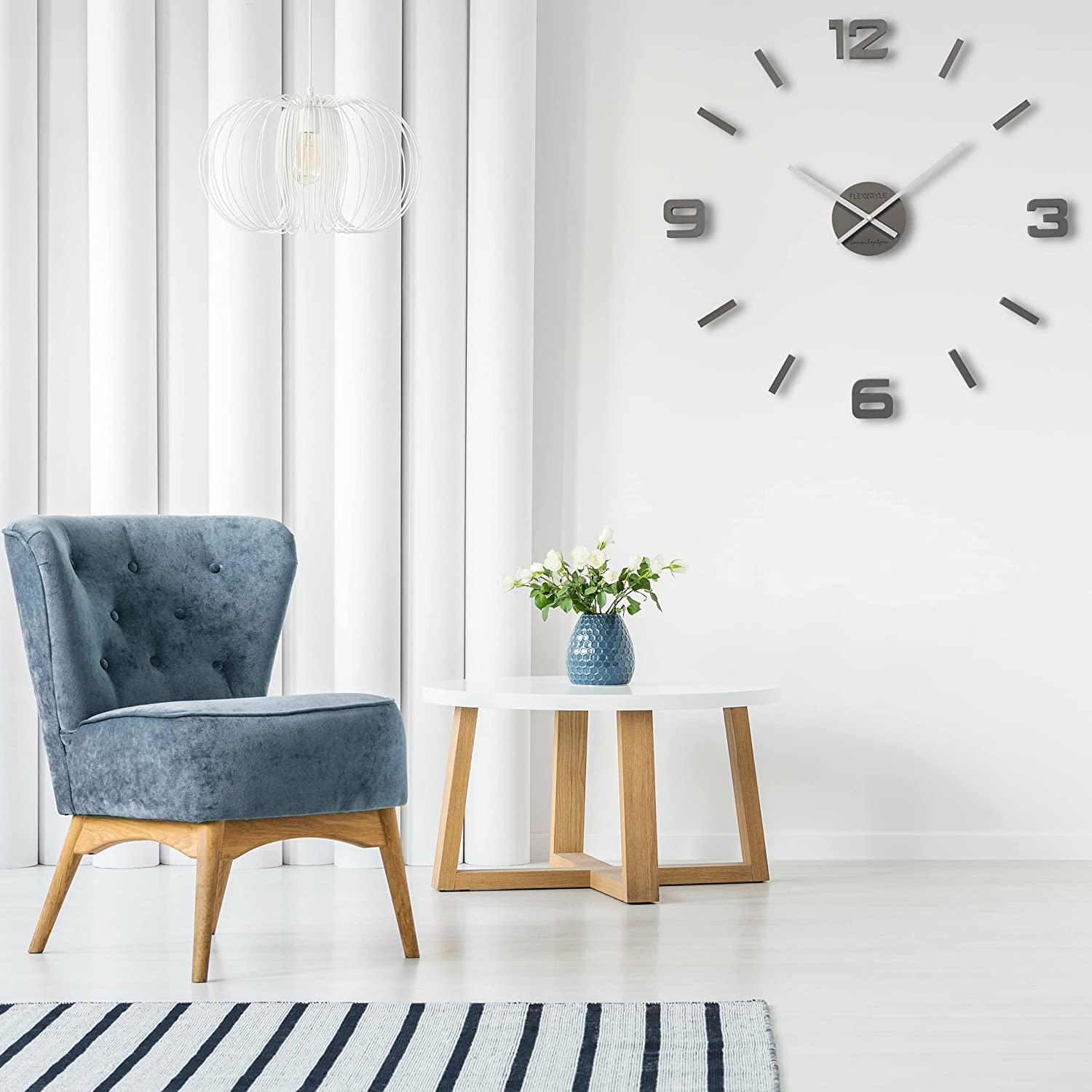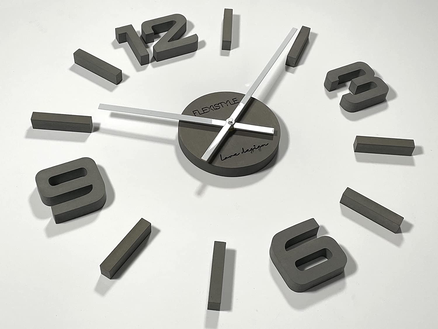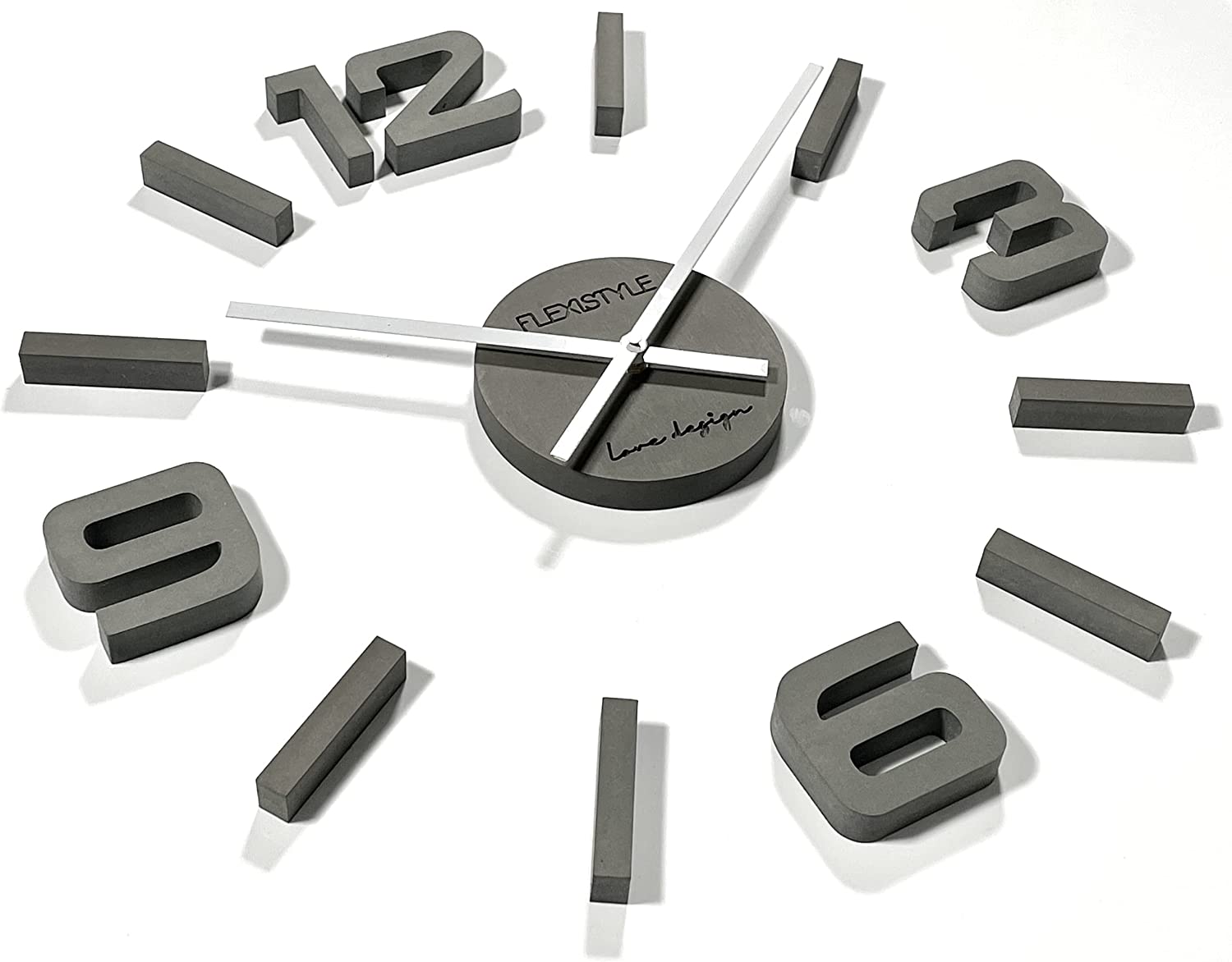 Стенен часовник FLEXISTYLE, Аналогов, Кварцов, Модерен, Картон HDF, Тиха работа, Голям циферблат, Размер 50см, Сив